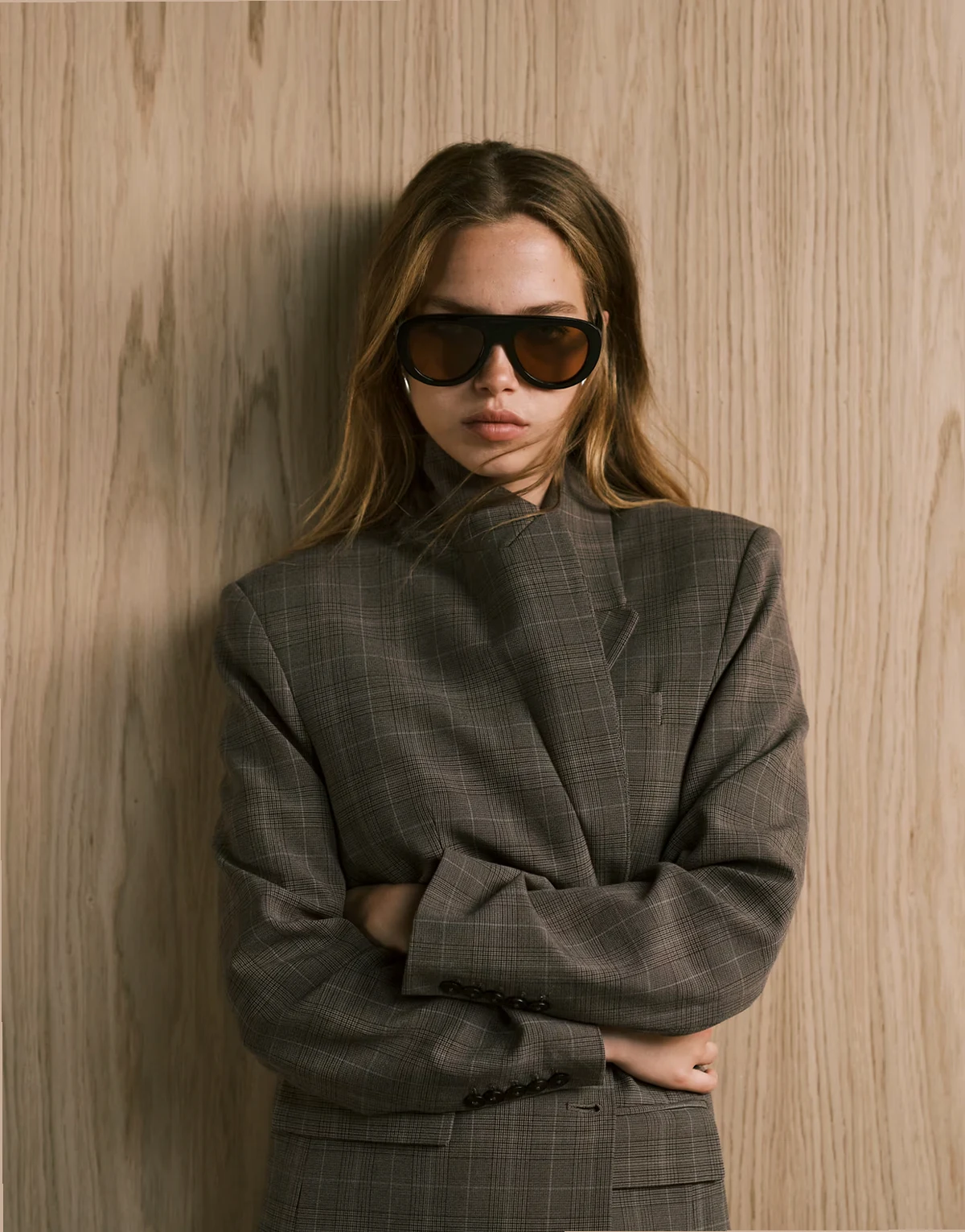4. Katy relaxed tailored blazer in brown plaid - part of a set
