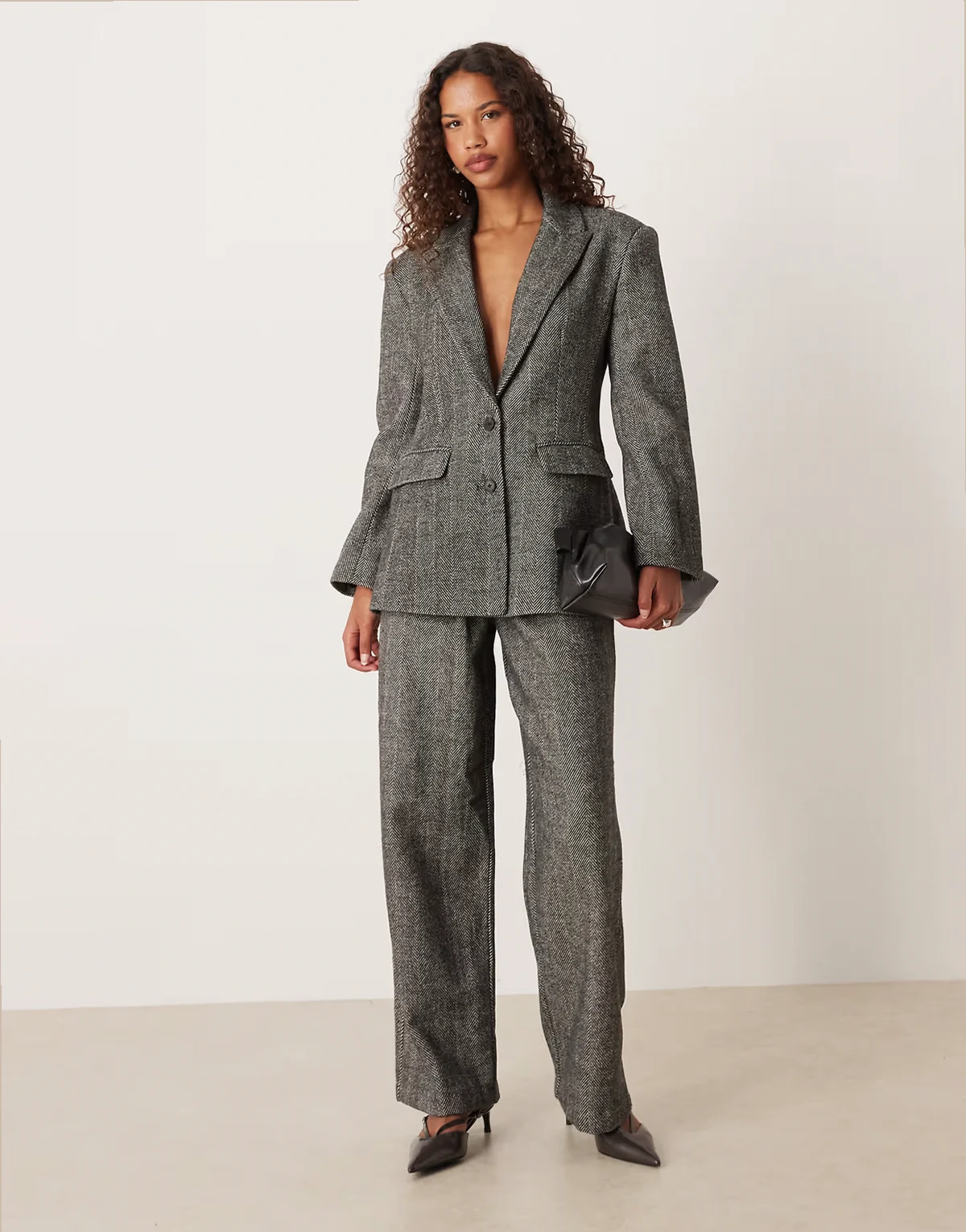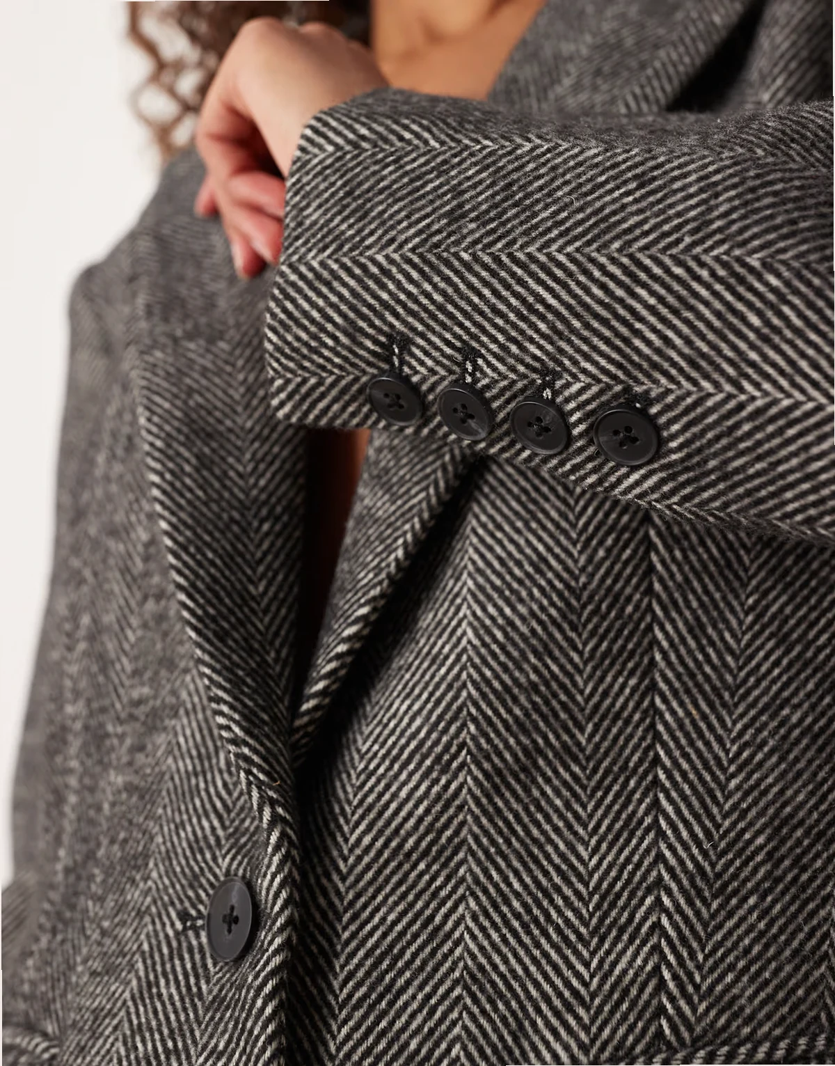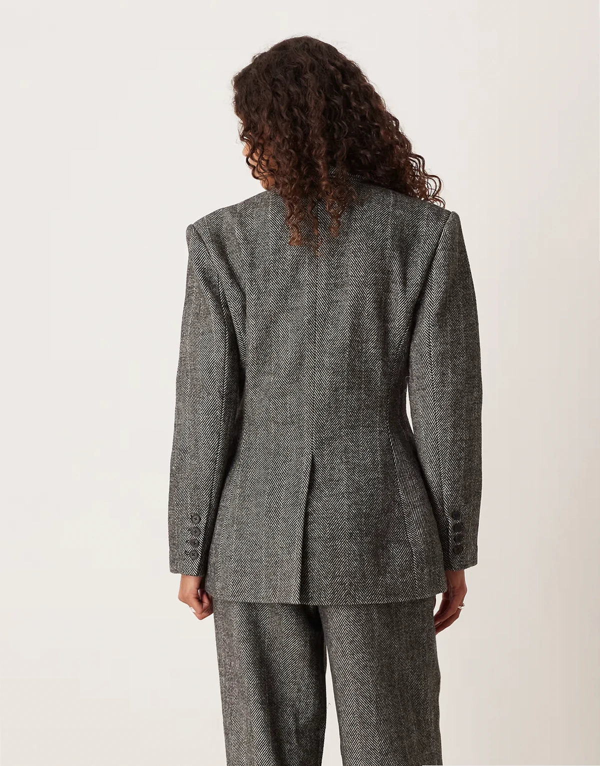 4. wool blend sculpted suit blazer in brushed black and white herringbone