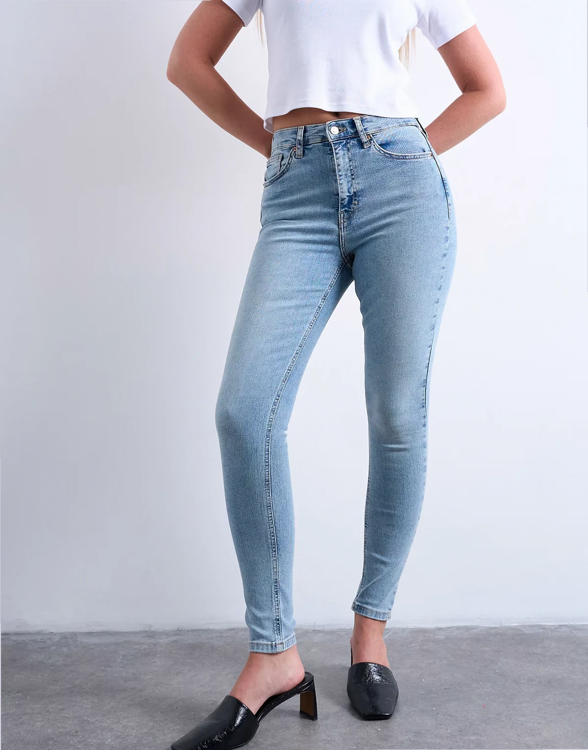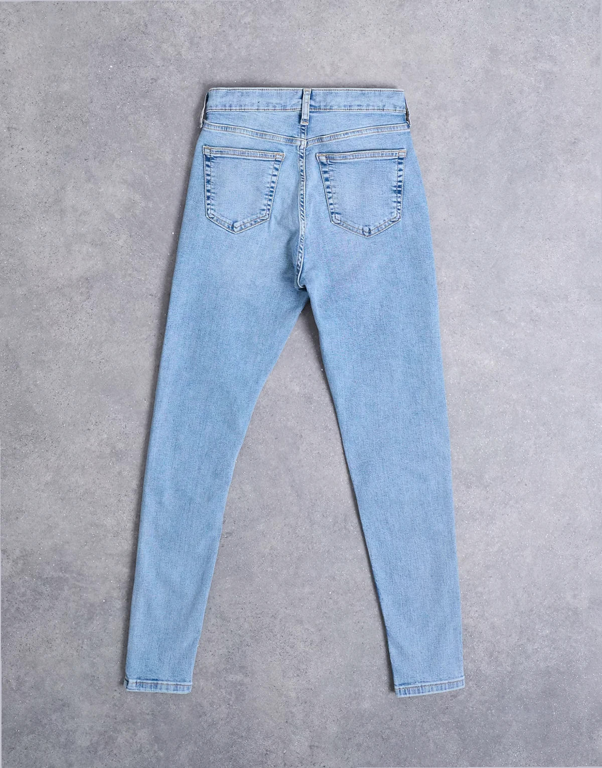 These Jamie jeans are cut with a high-rise waist, more room around the hips and a skinny leg that finishes at the ankle. Featuring belt loops, a zip fly and five functional pockets, this style is crafted from denim with power stretch technology in a bleach-blue wash.