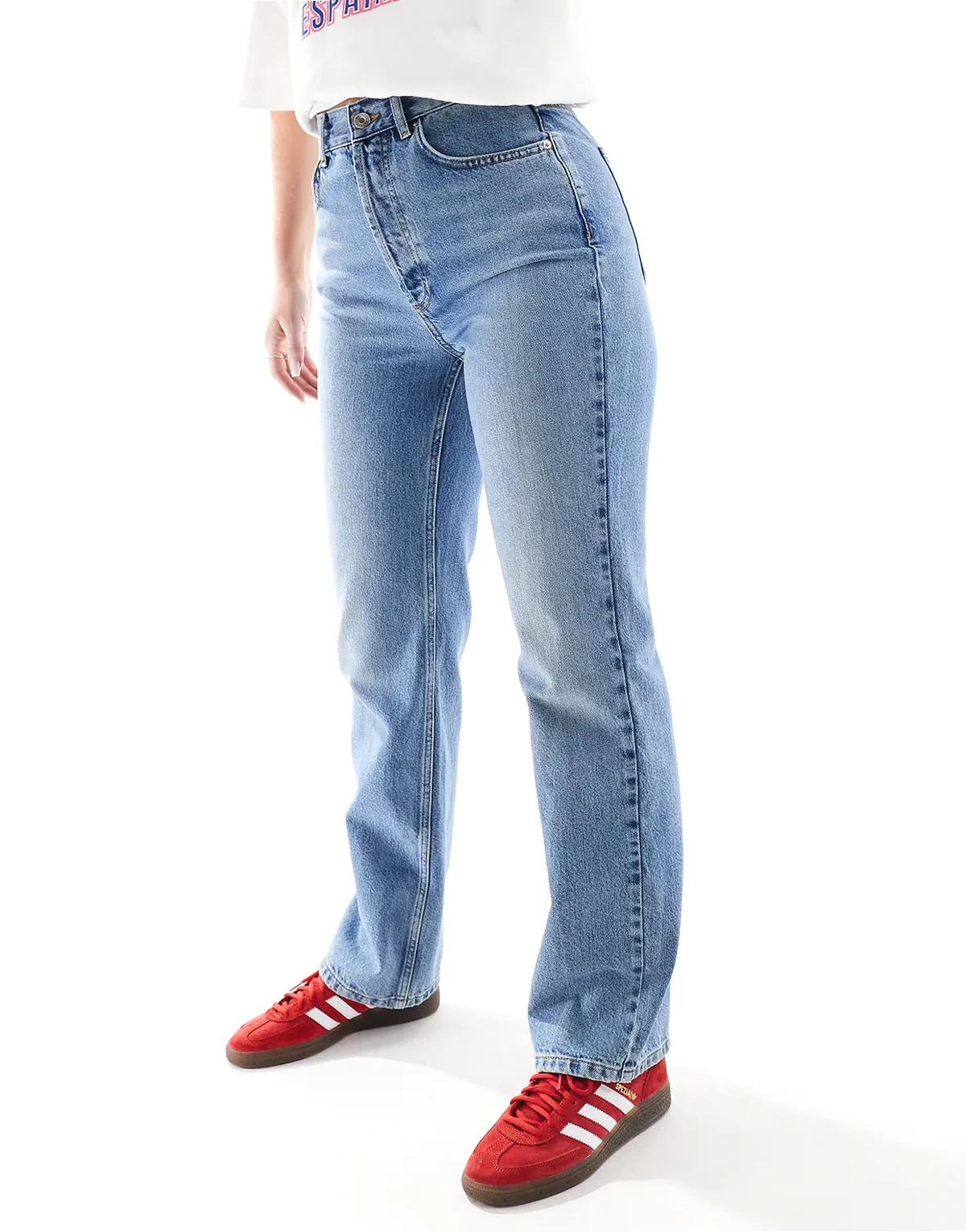 Non-stretch denim: mid-blue wash