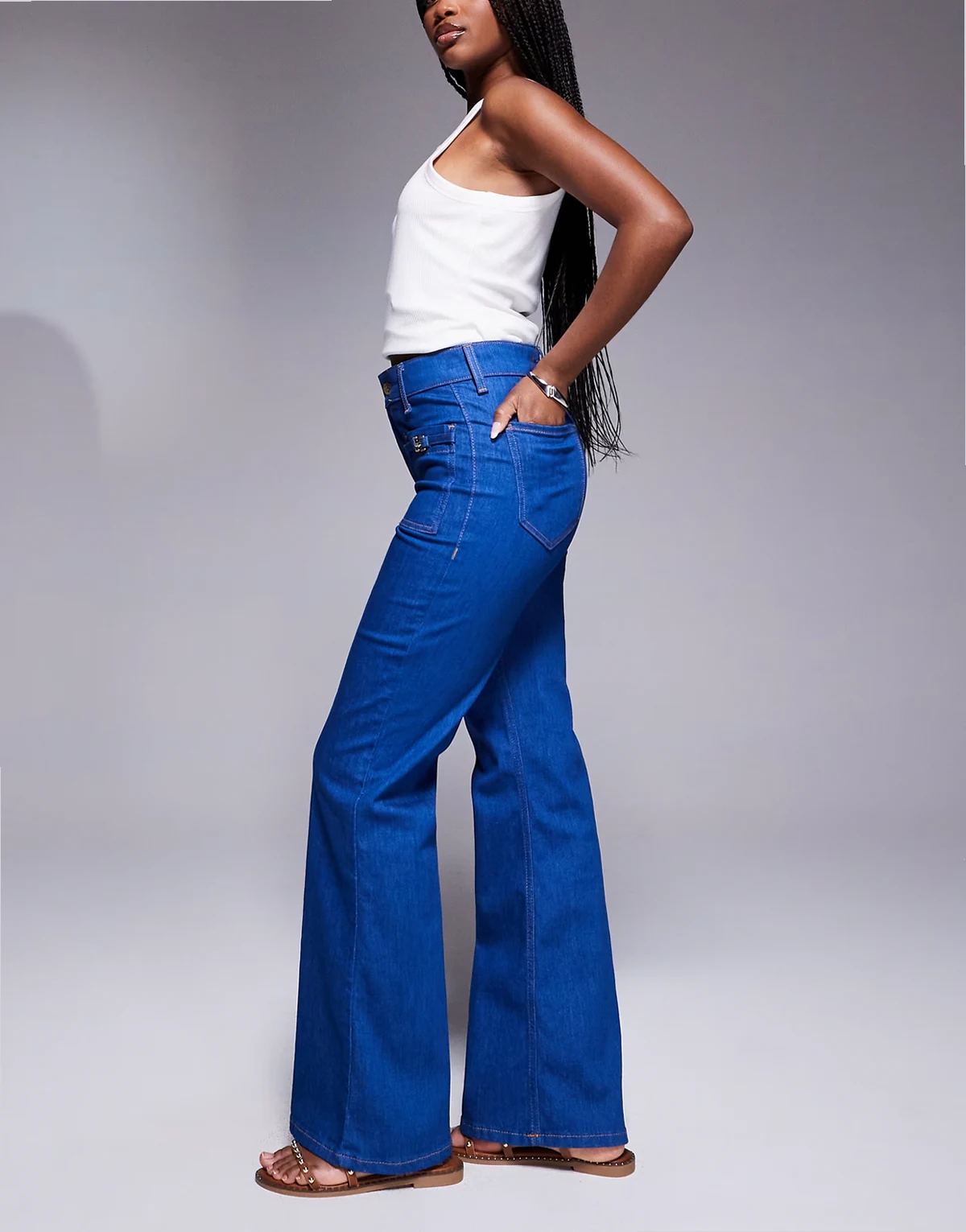 relaxed flare jeans in bright blue