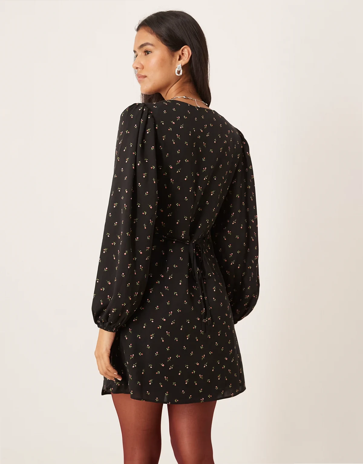 70s puff sleeve V-neck mini dress in multi floral