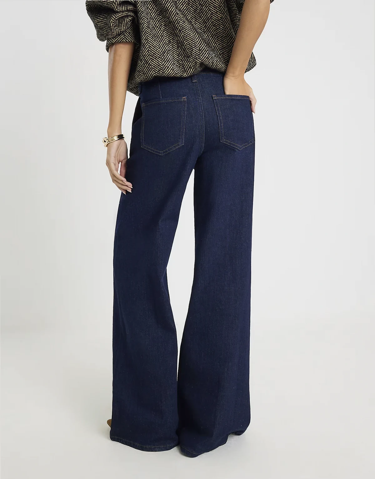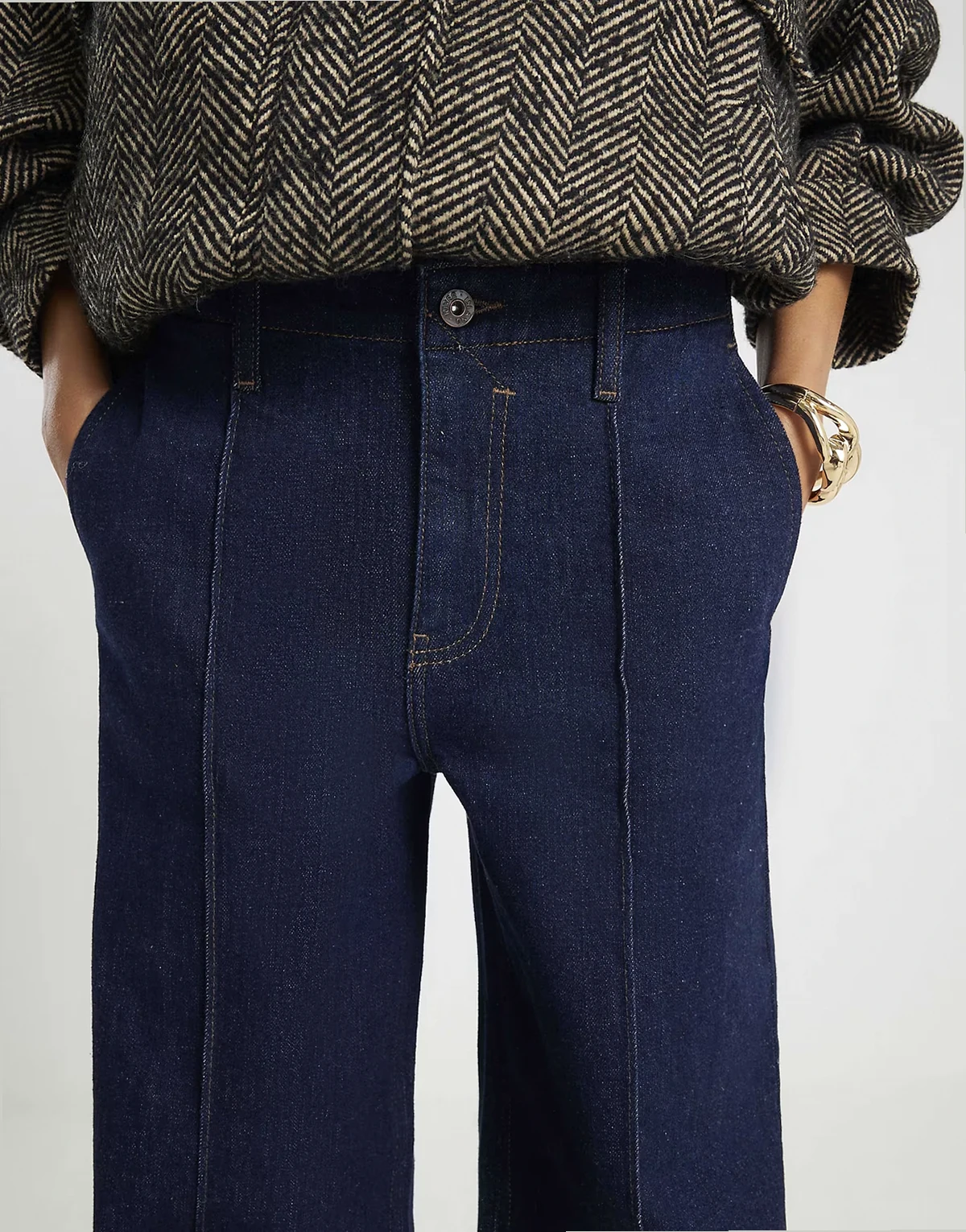 pin seam detailing palazzo jeans in dark denim