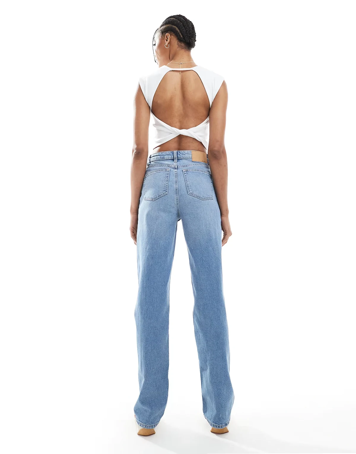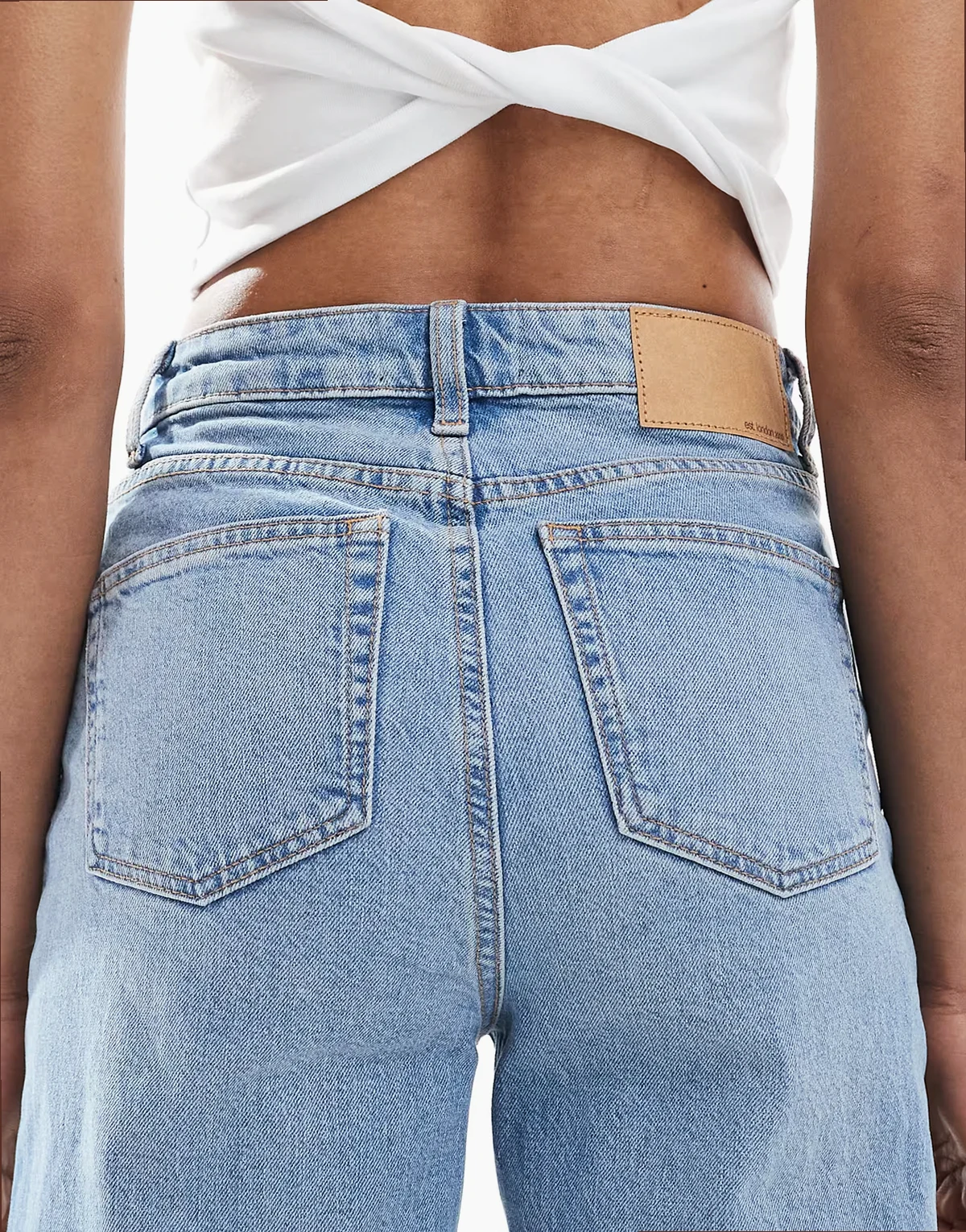 Non-stretch denim: mid-blue wash