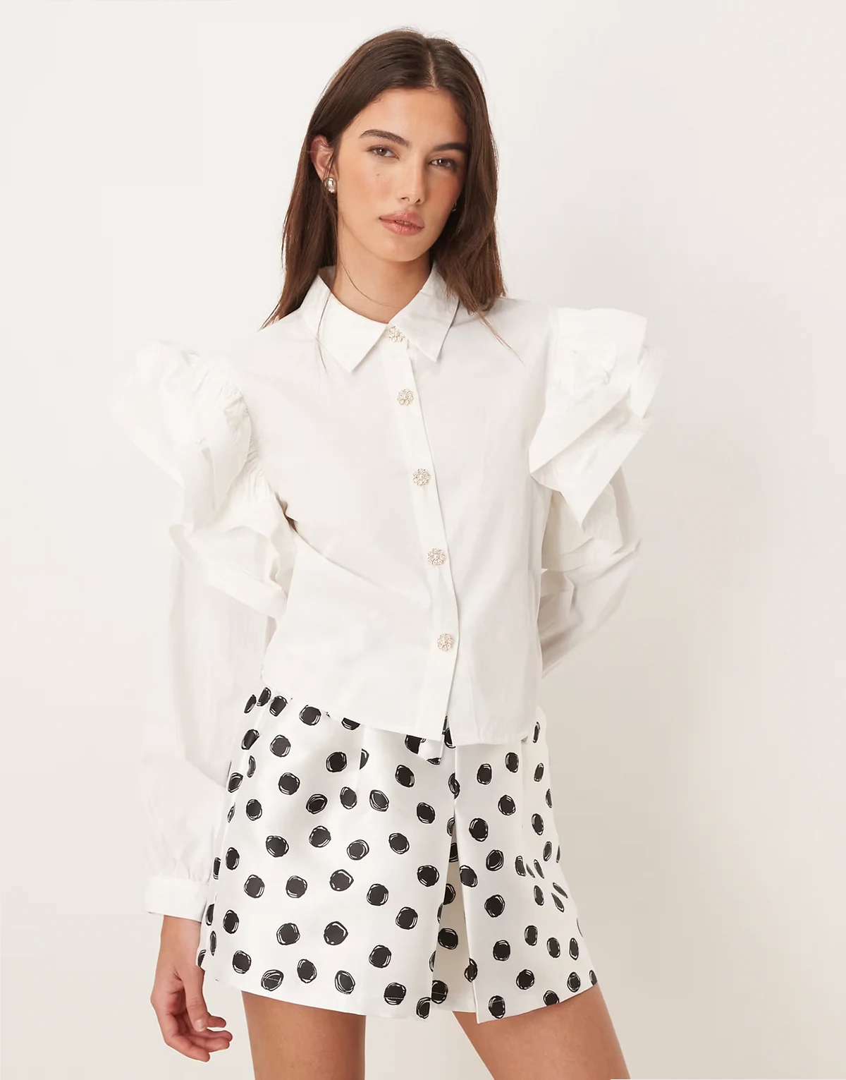 Illume polka dot belted shorts in ivory
