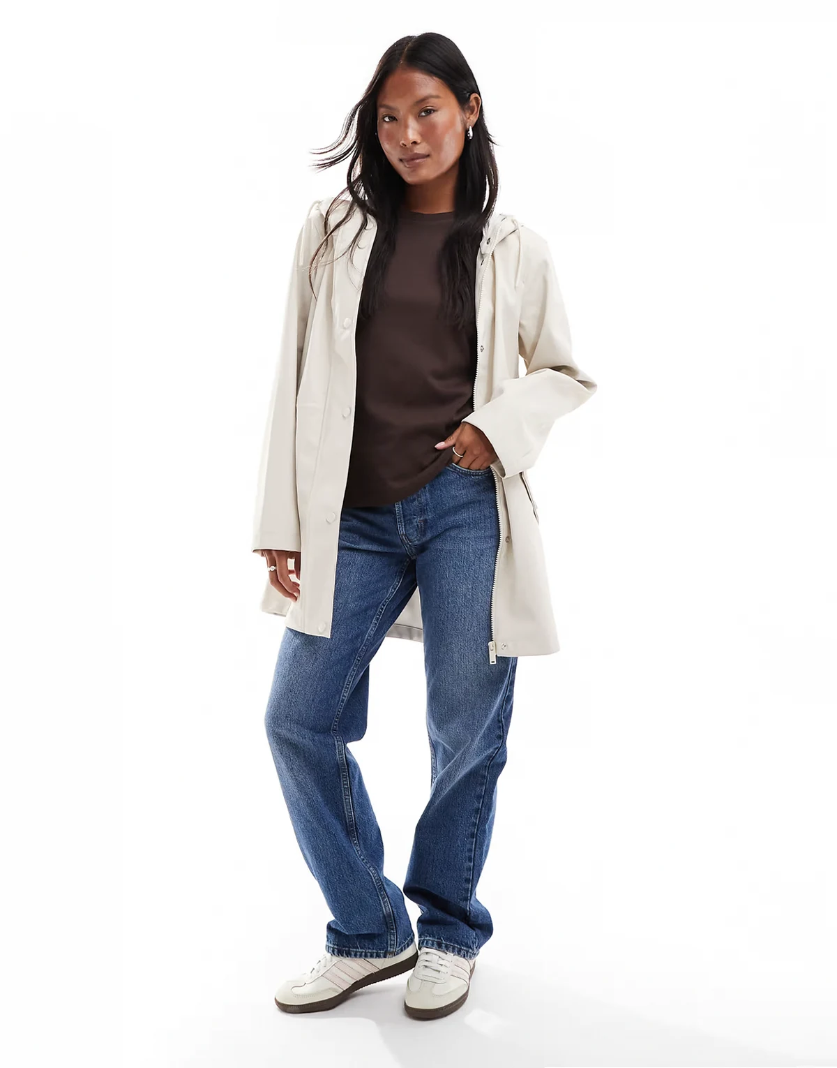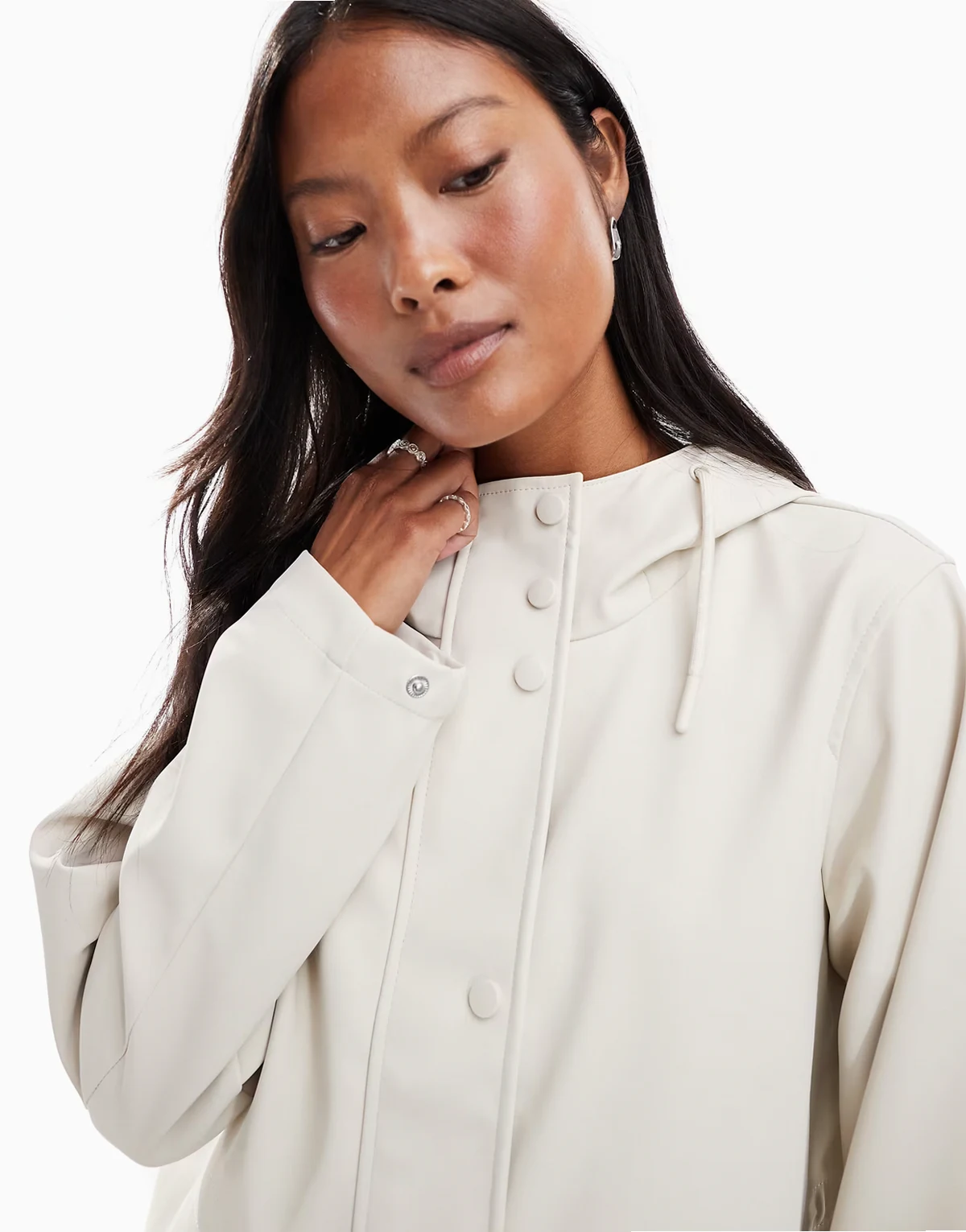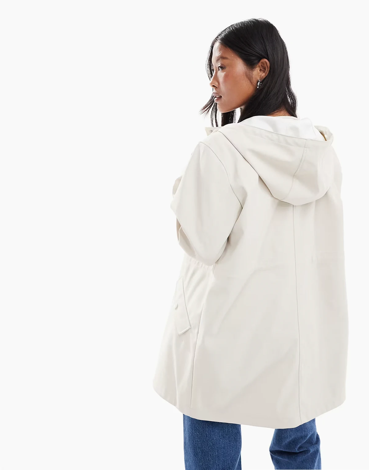 coated rain jacket with hood in moonbeam stone