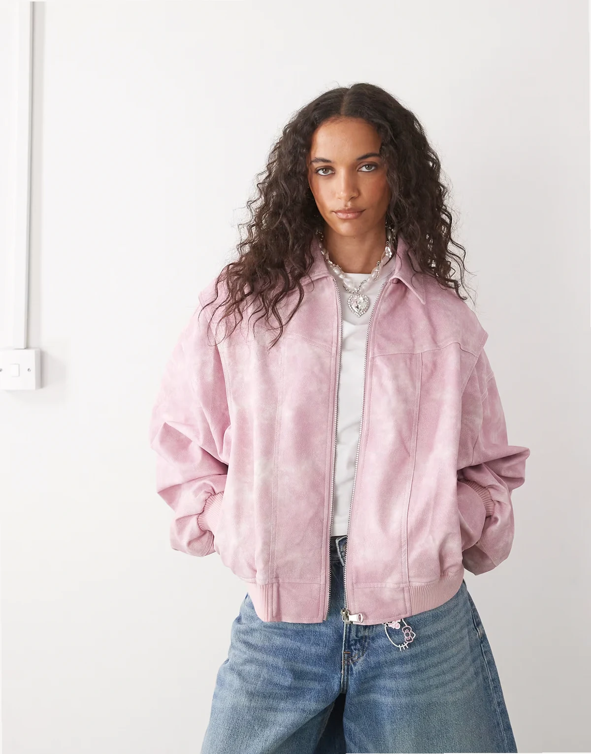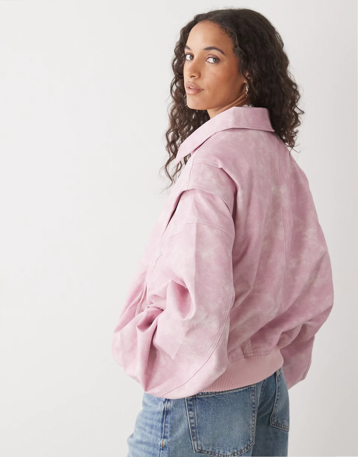 exclusive Vista leather look contrast stitch bomber jacket in pink