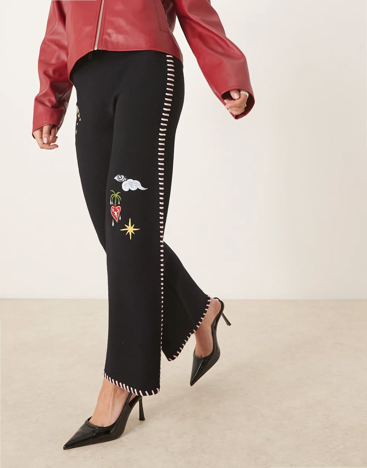 Embroidery detail on leg
