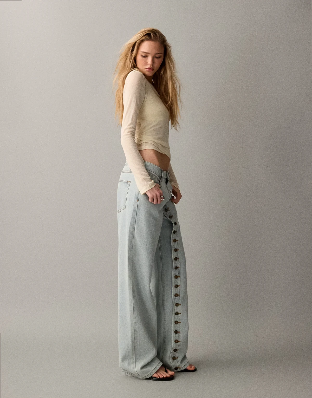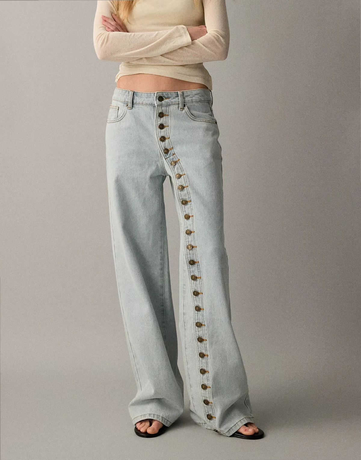 Penny asymmetric button detail relaxed leg jeans in light wash