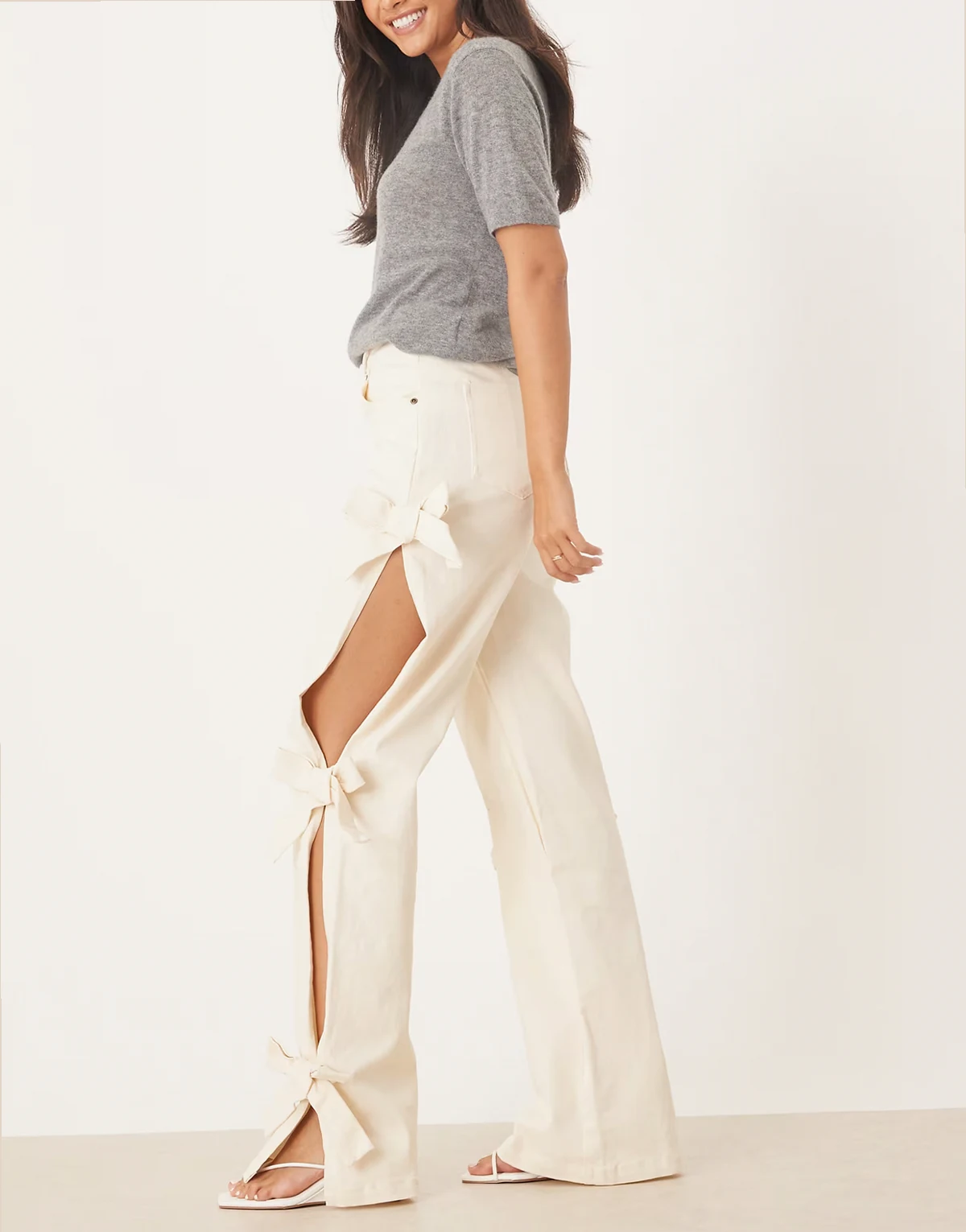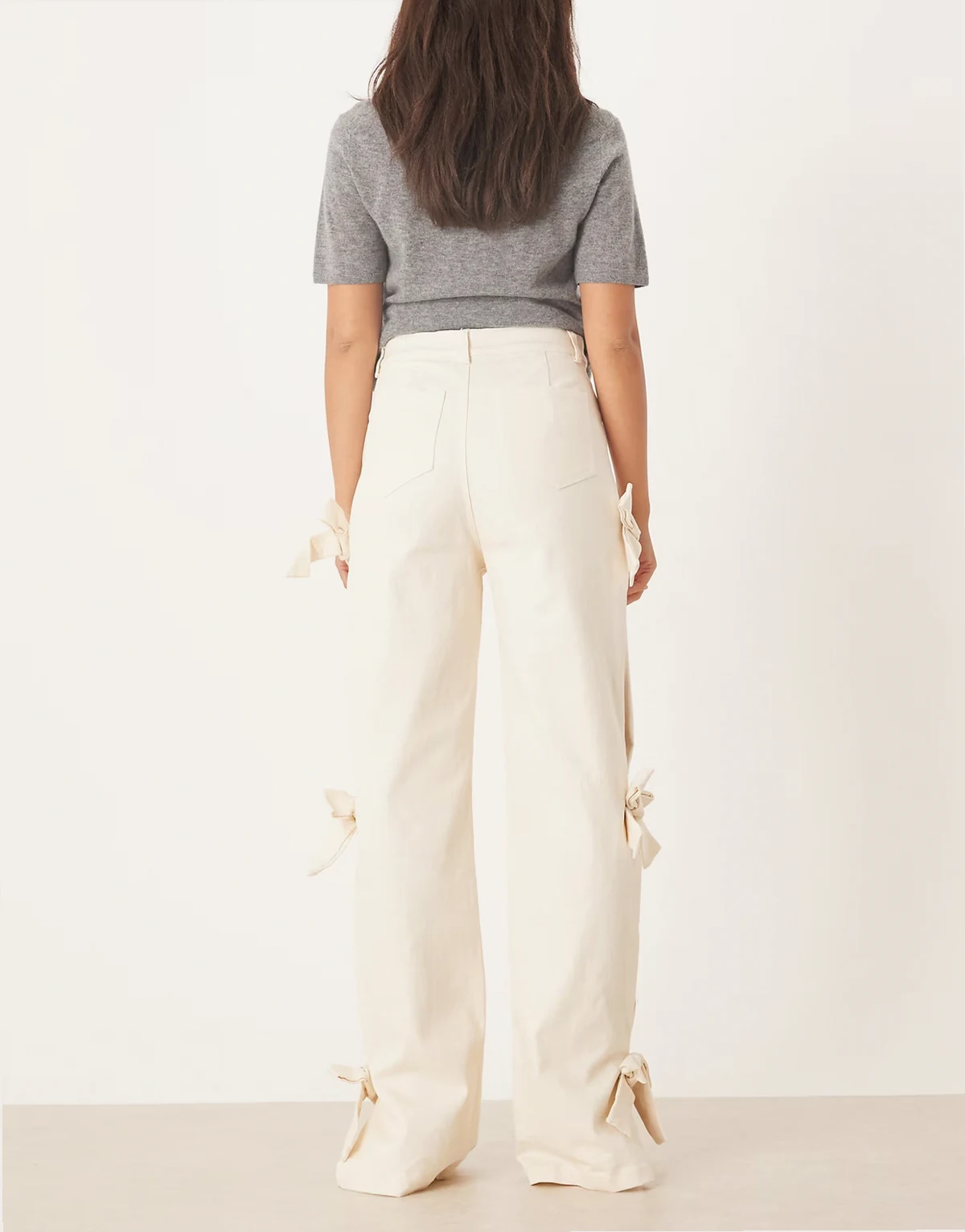 Bay denim jeans with bow details in cream