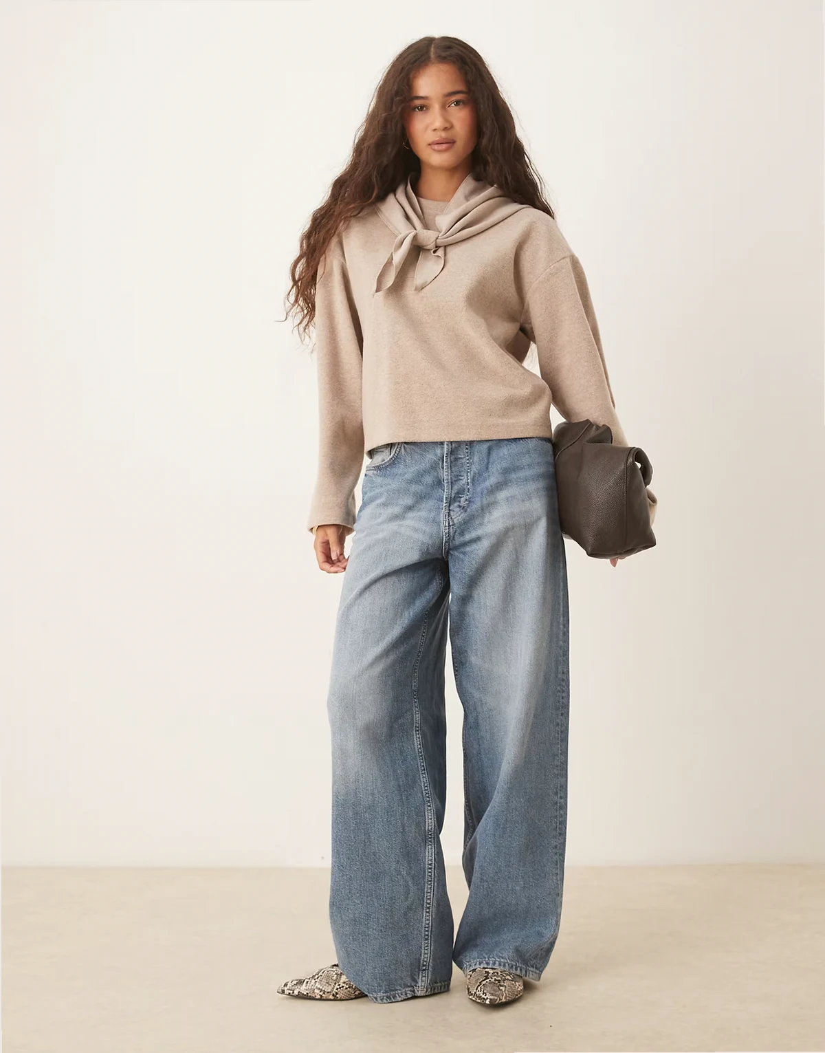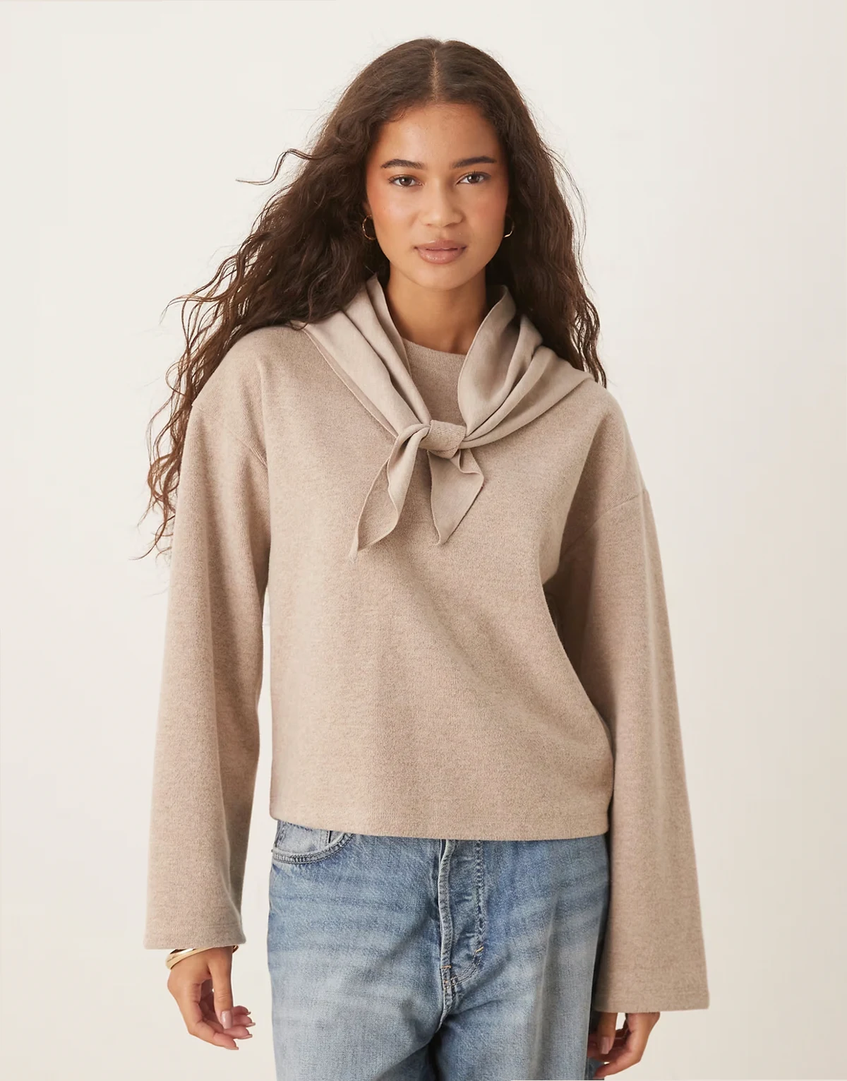 soft touch sweater with scarf detail in oat