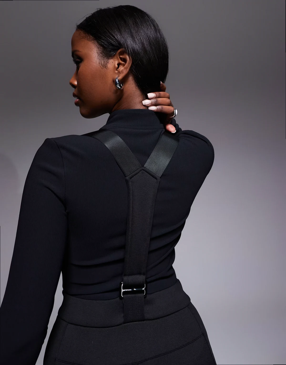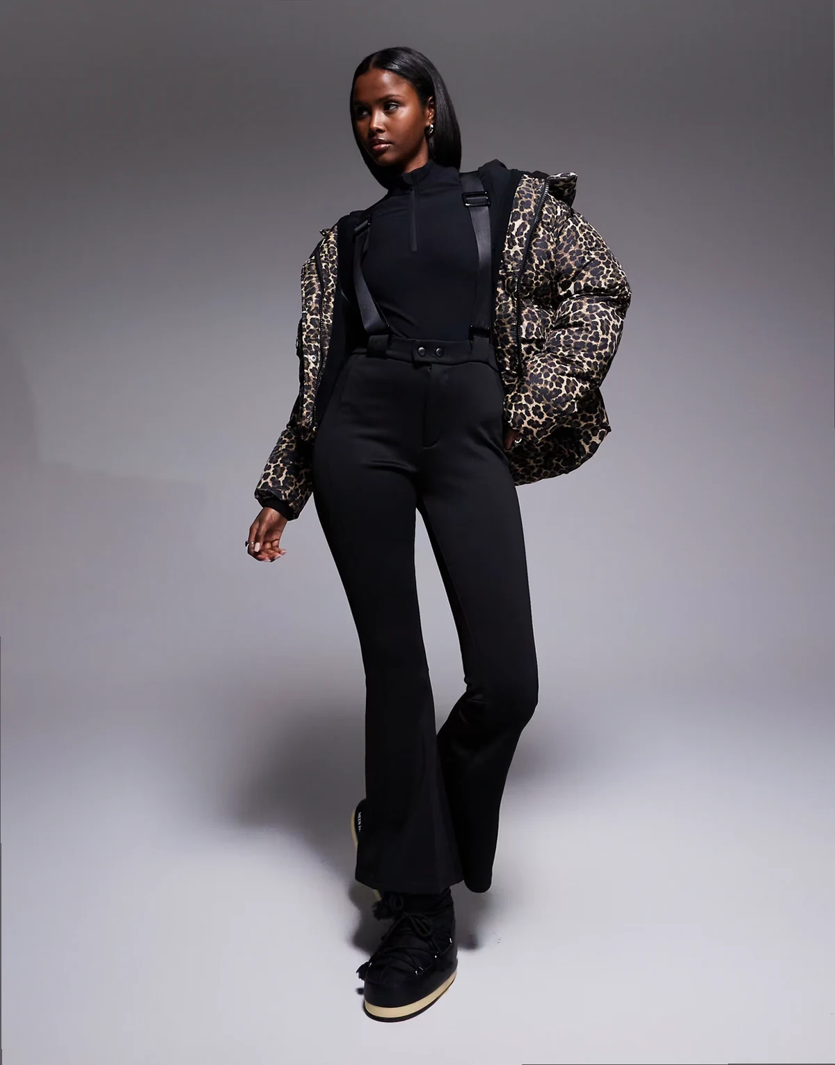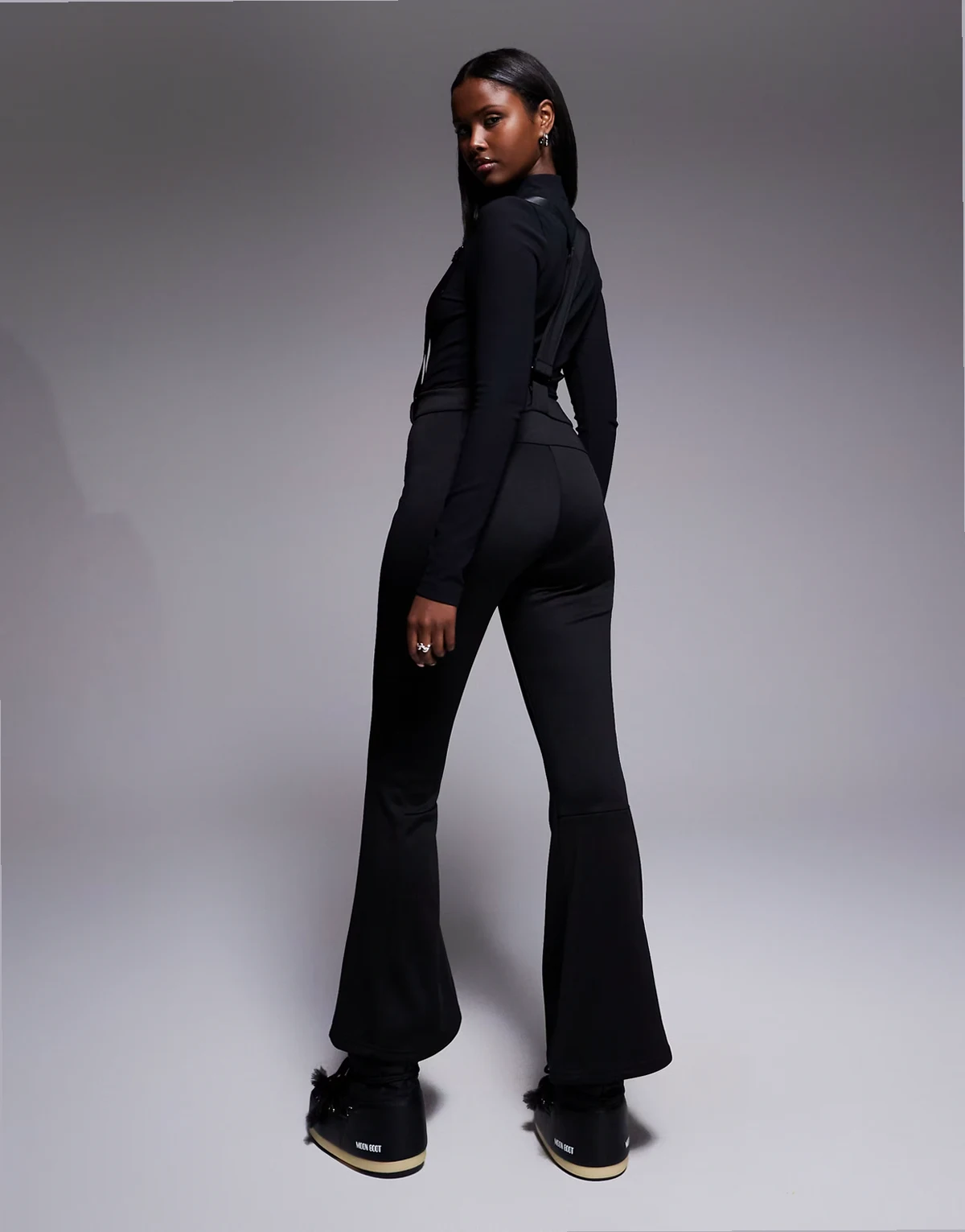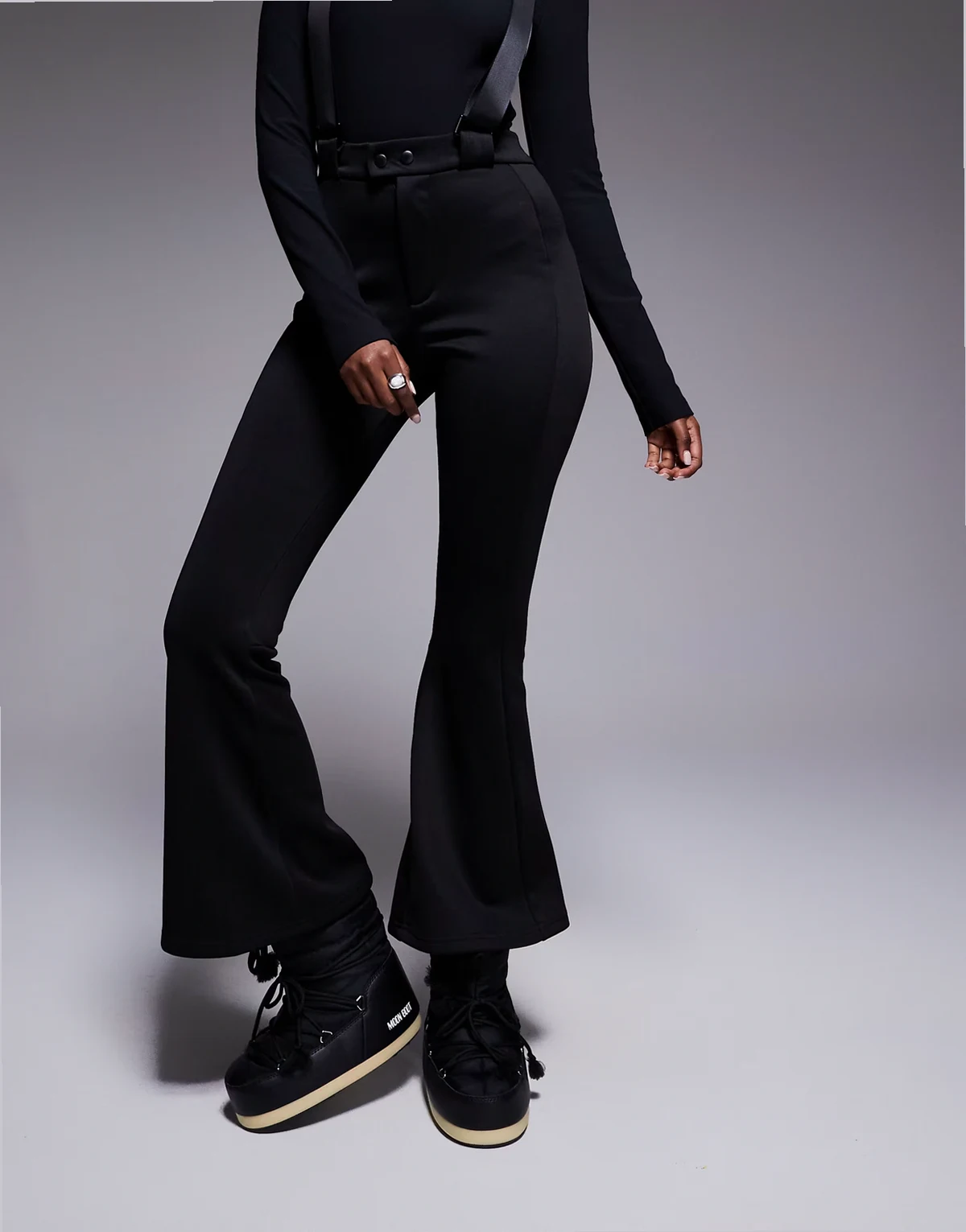 Ski wide leg pants with suspenders in black