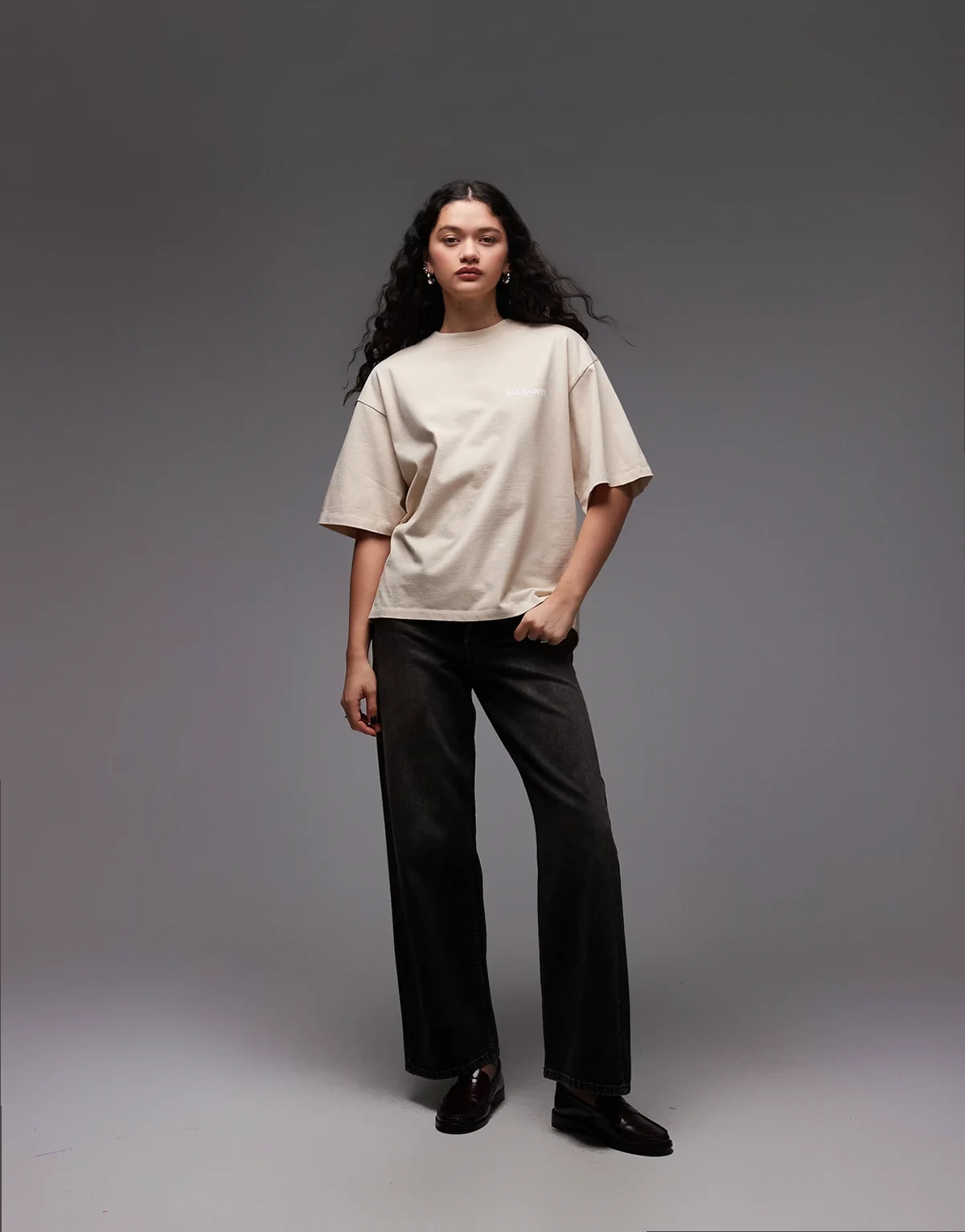 AllSaints branding and graphic print on back