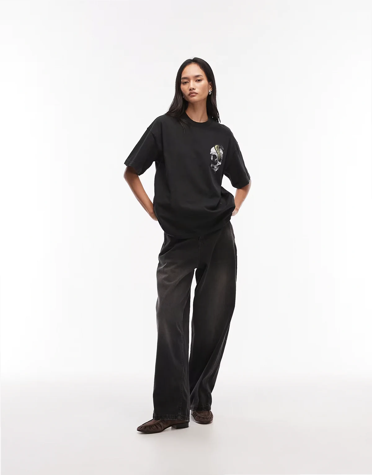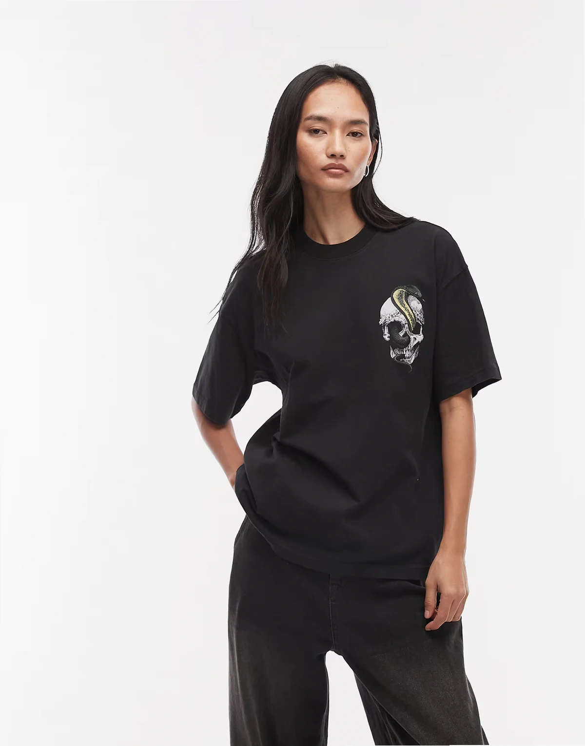 Etta snake skull graphic tee in washed black