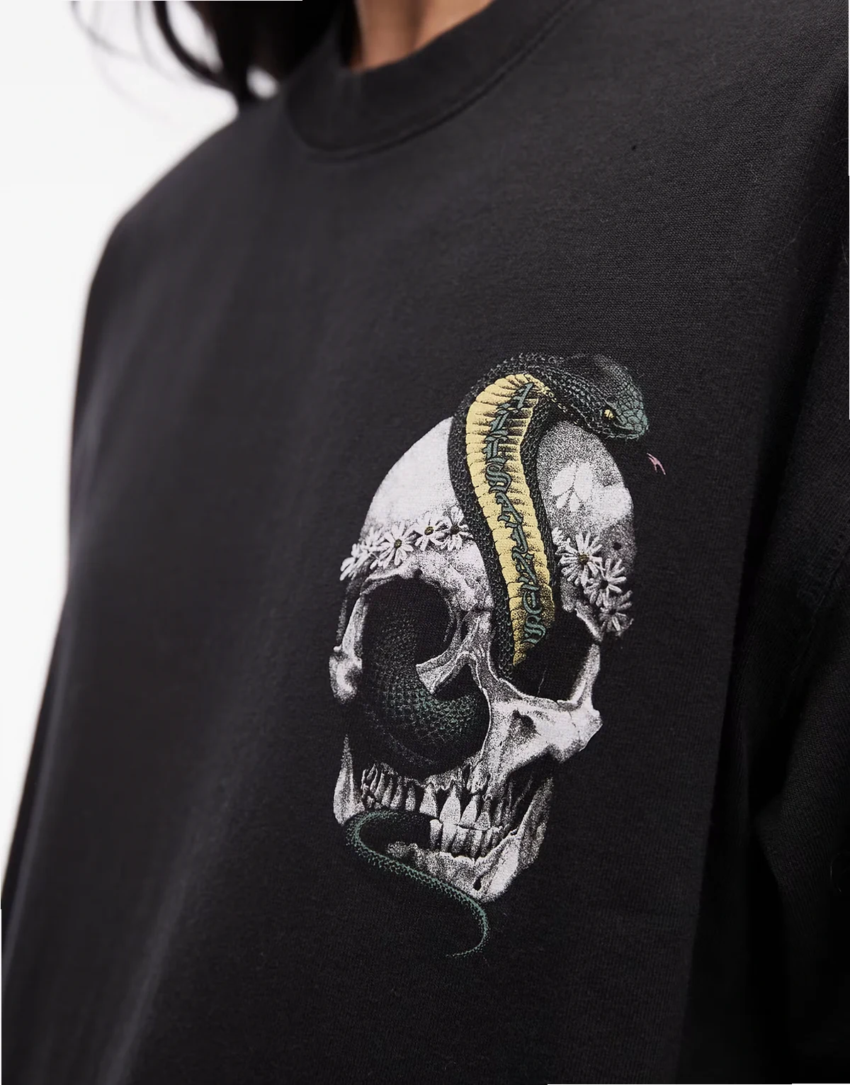 Snake and skull graphic print on chest and back