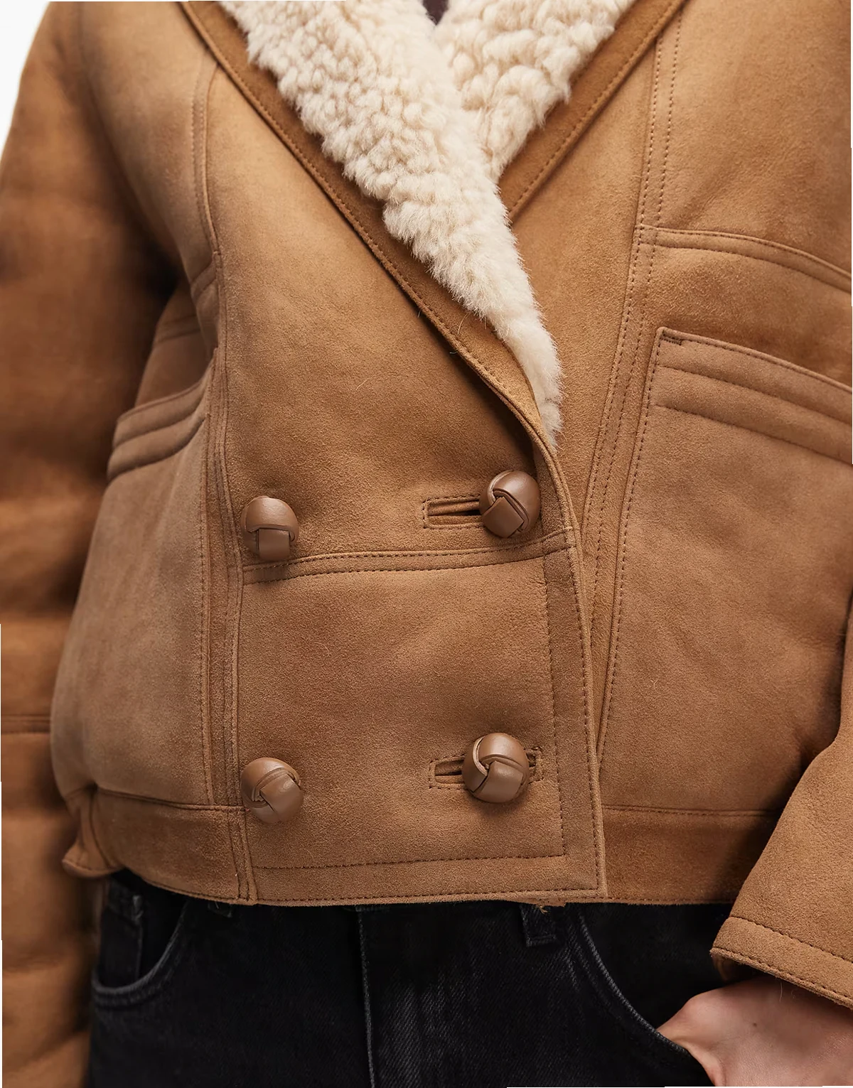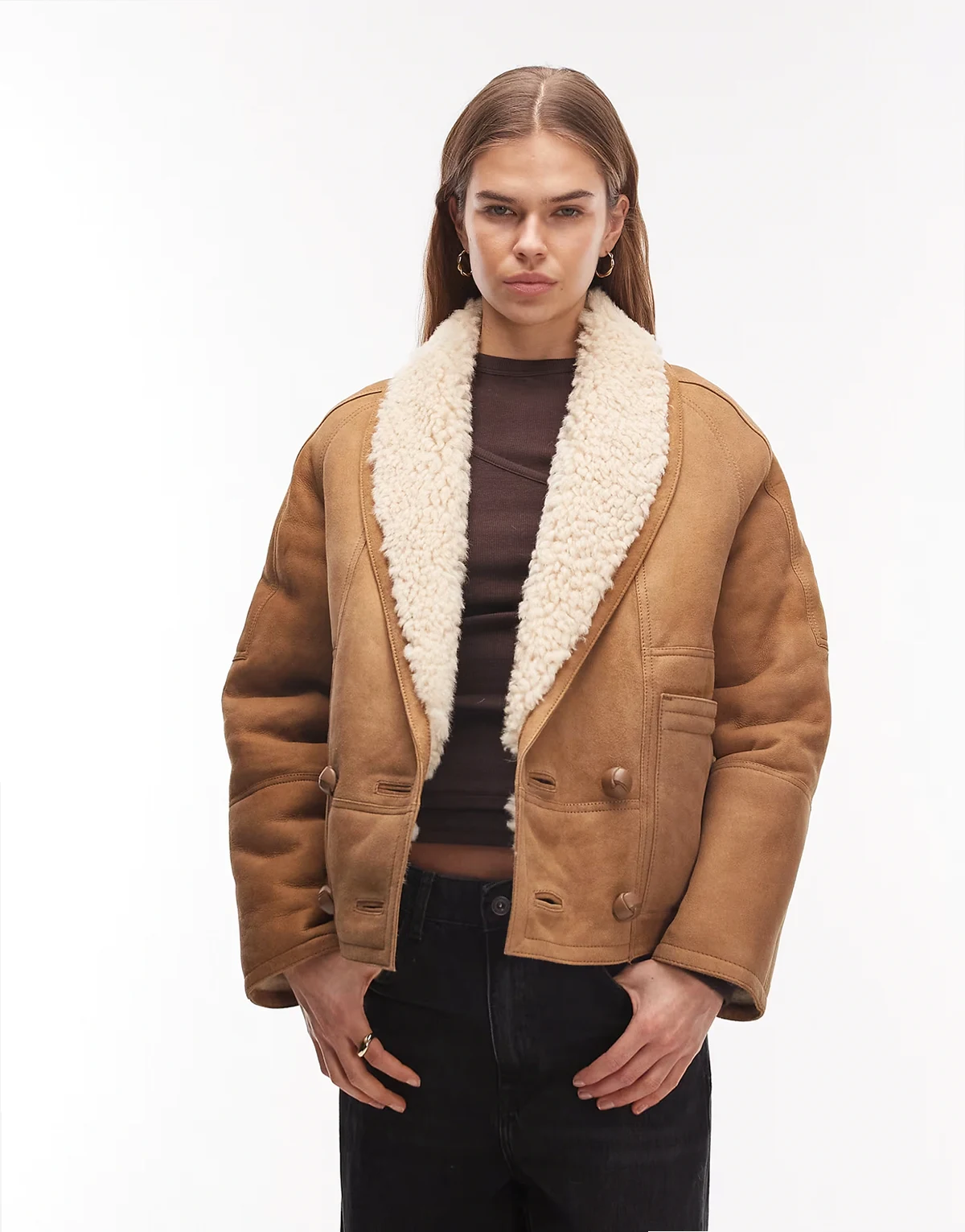 Charlton suede shearling coat in tan