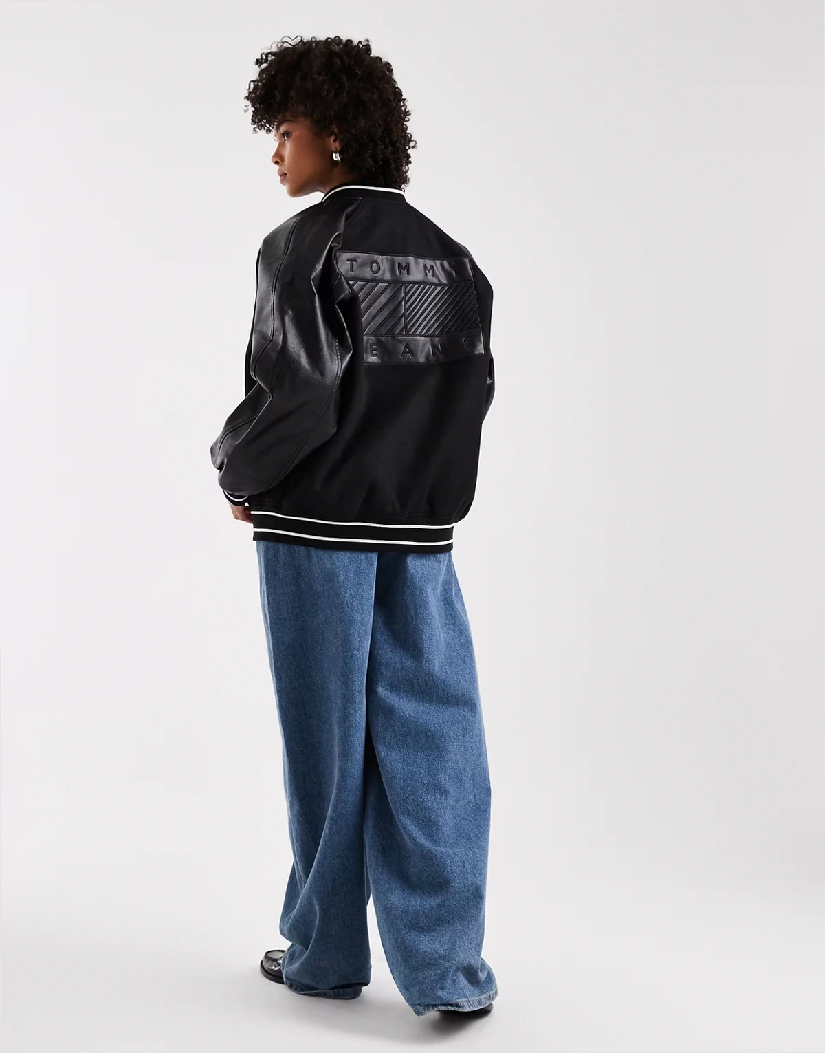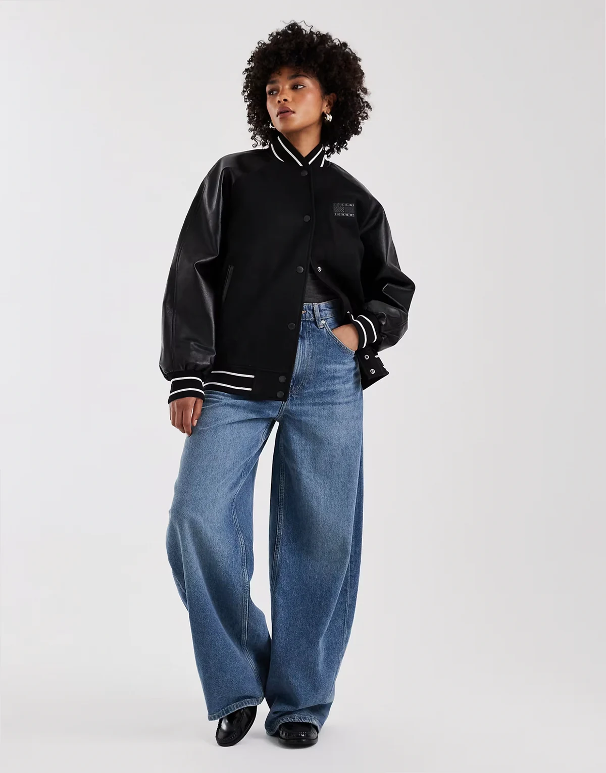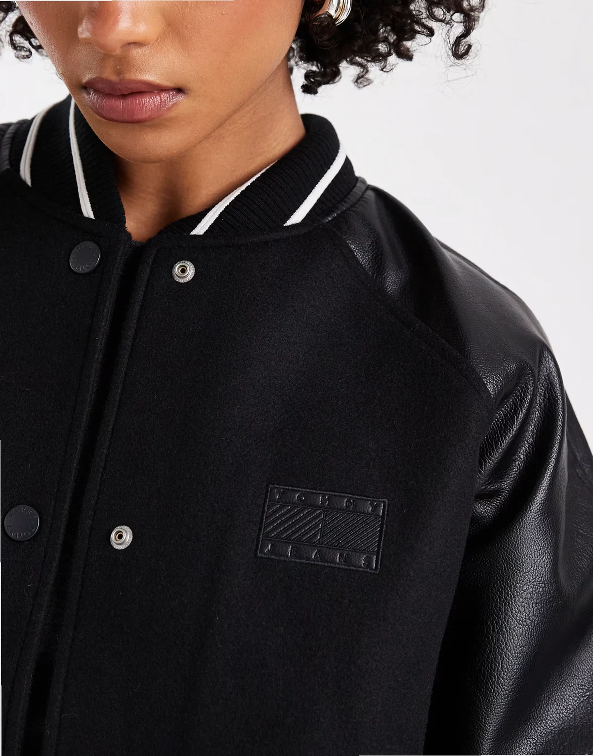 oversized flag logo varsity jacket in black