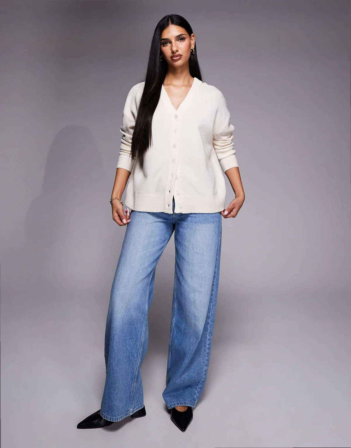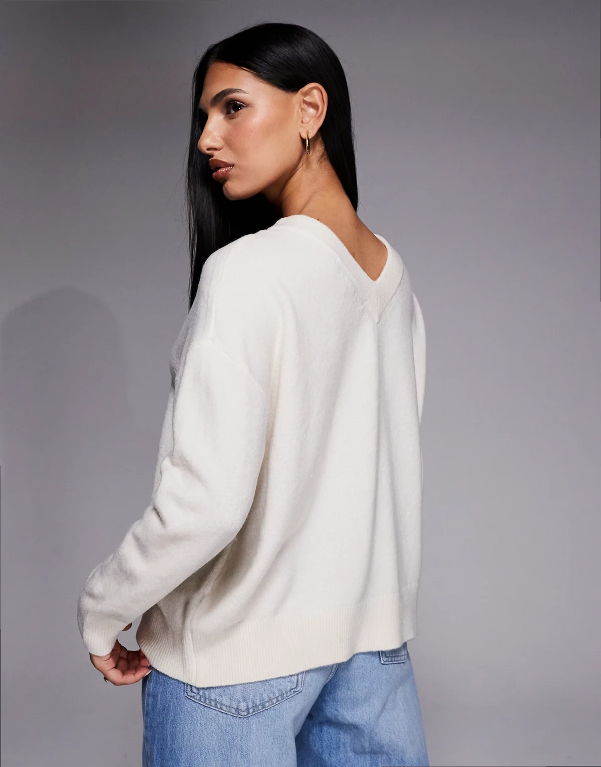 v neck and back detailed cardigan in cream