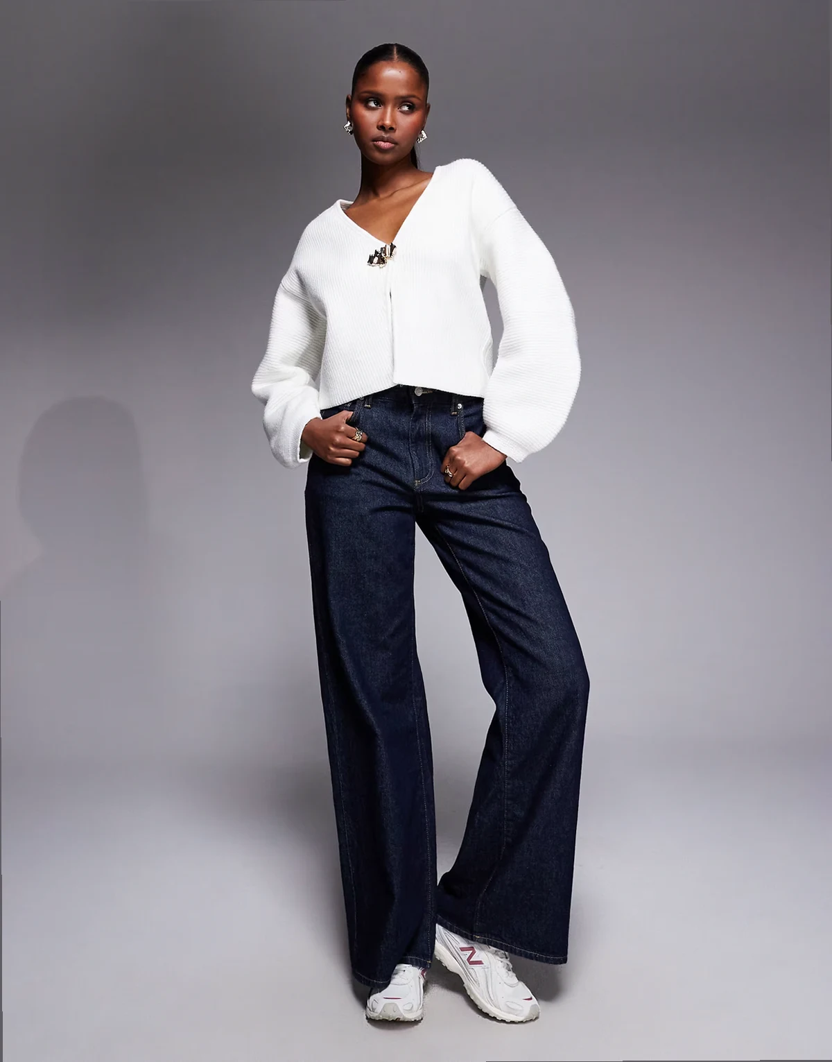 gold detail knit cardigan in cream