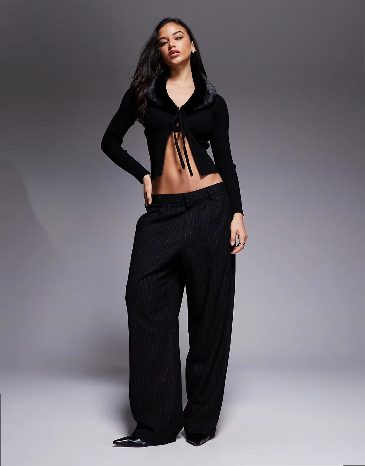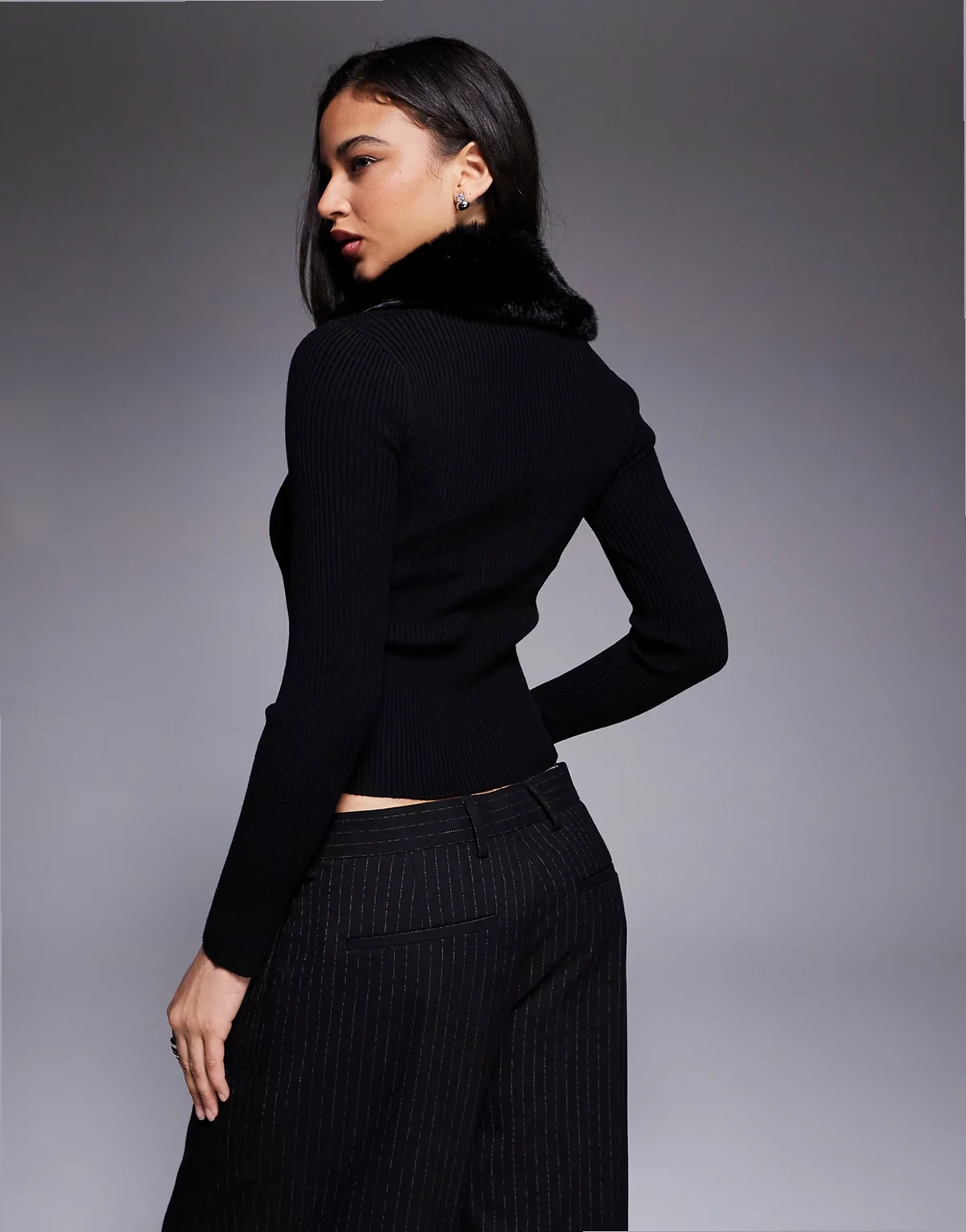 faux fur trim cardigan in black
