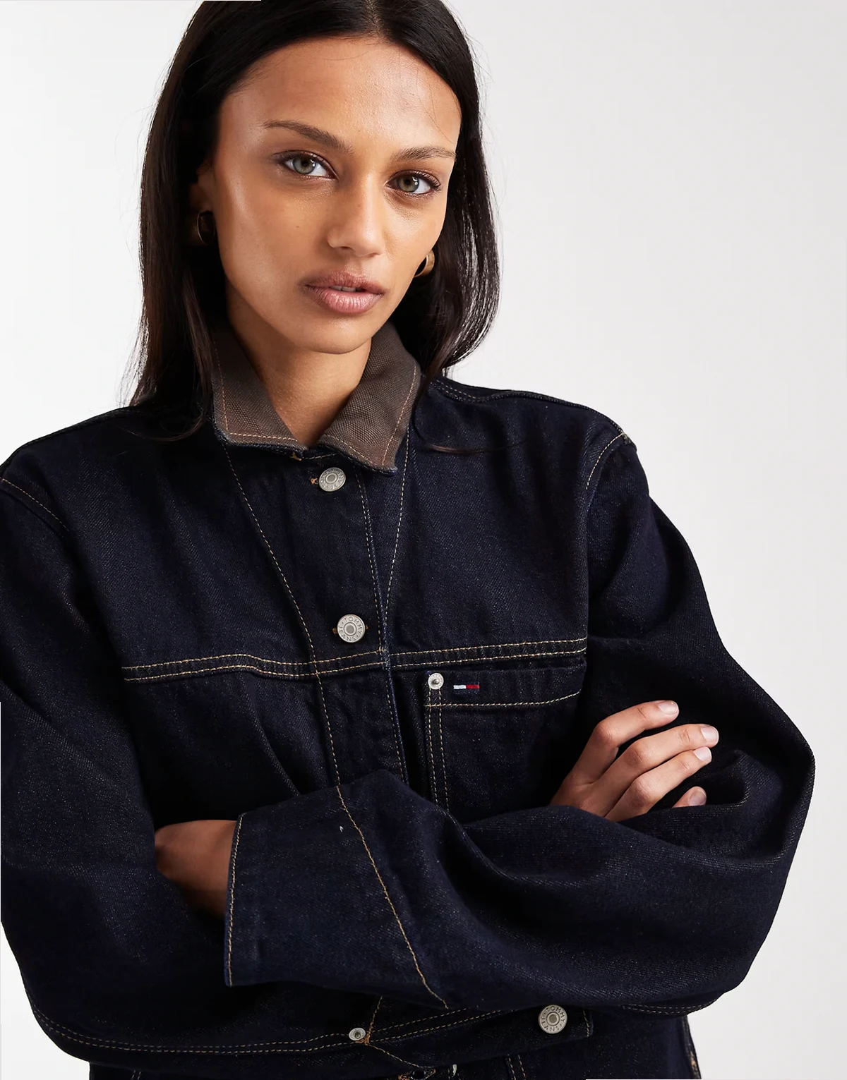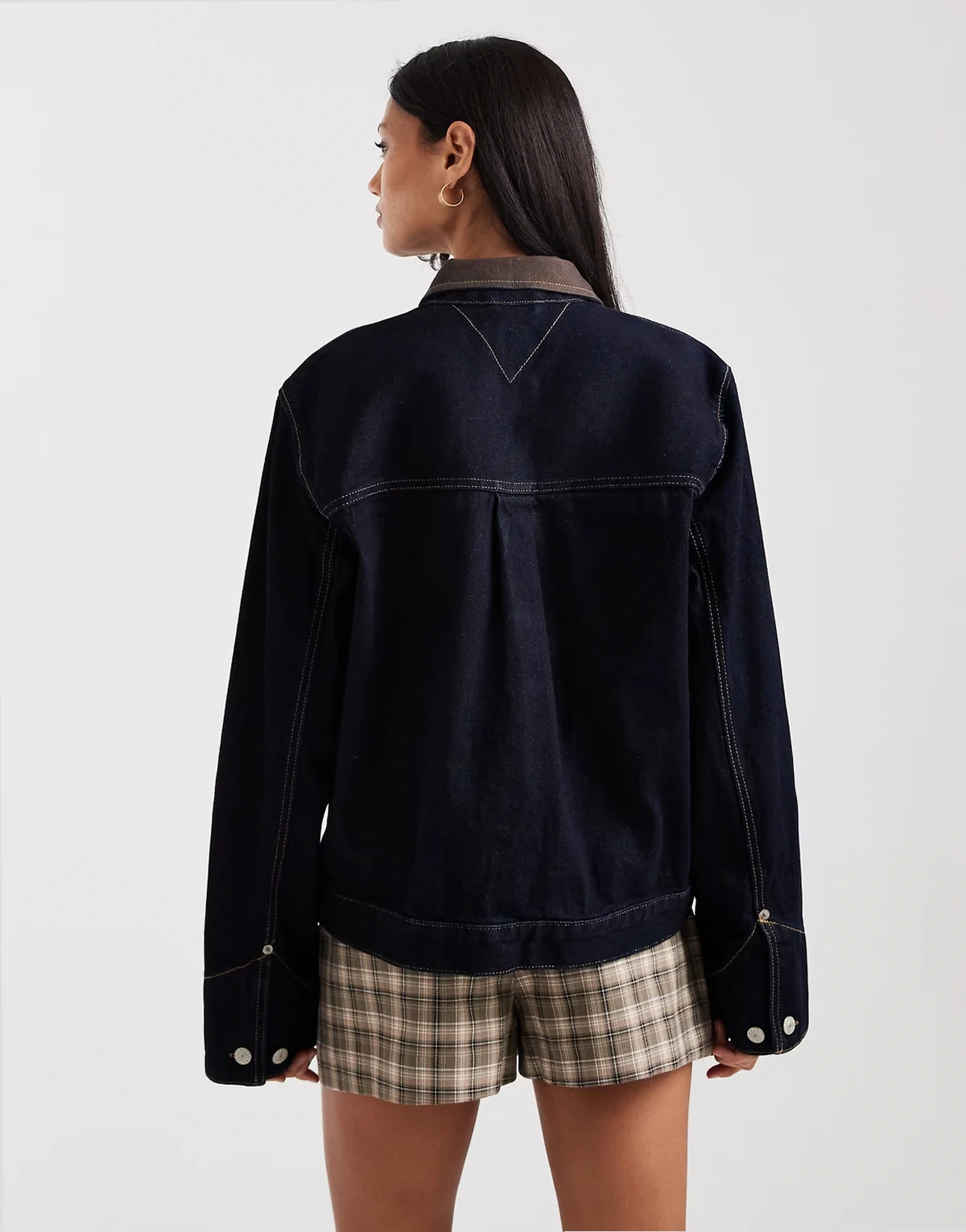 oversized chore jacket with contrast collar in dark wash