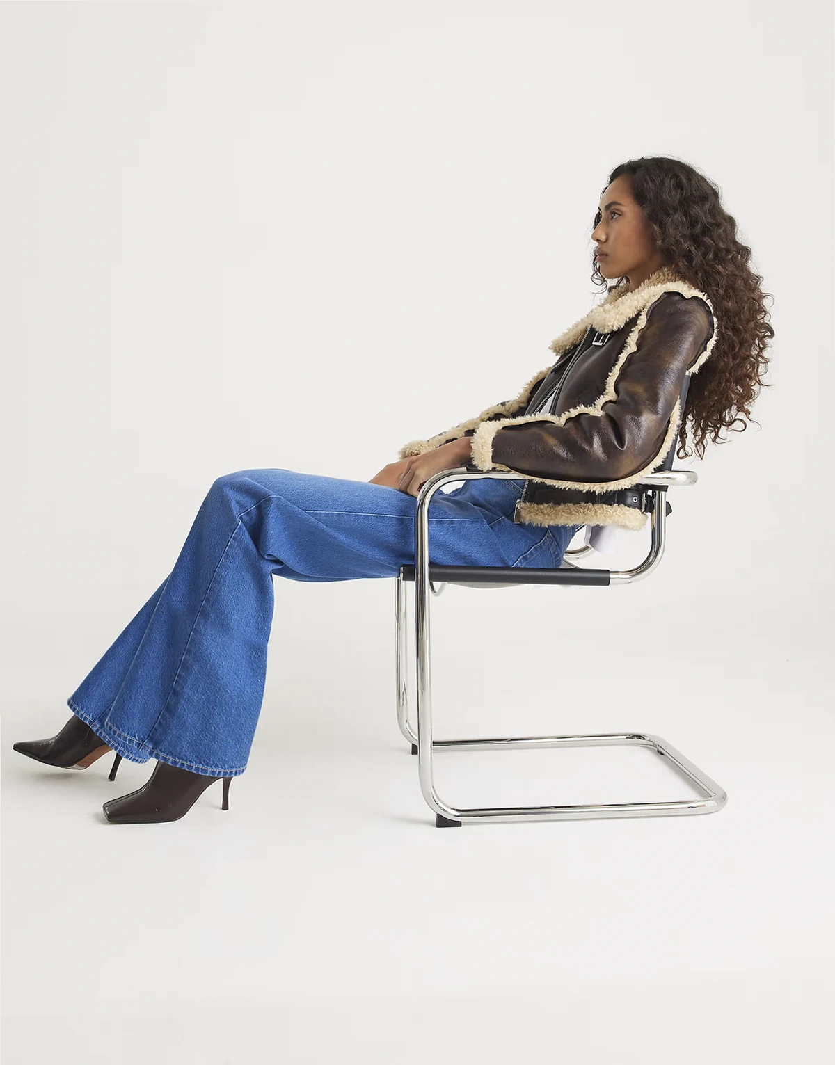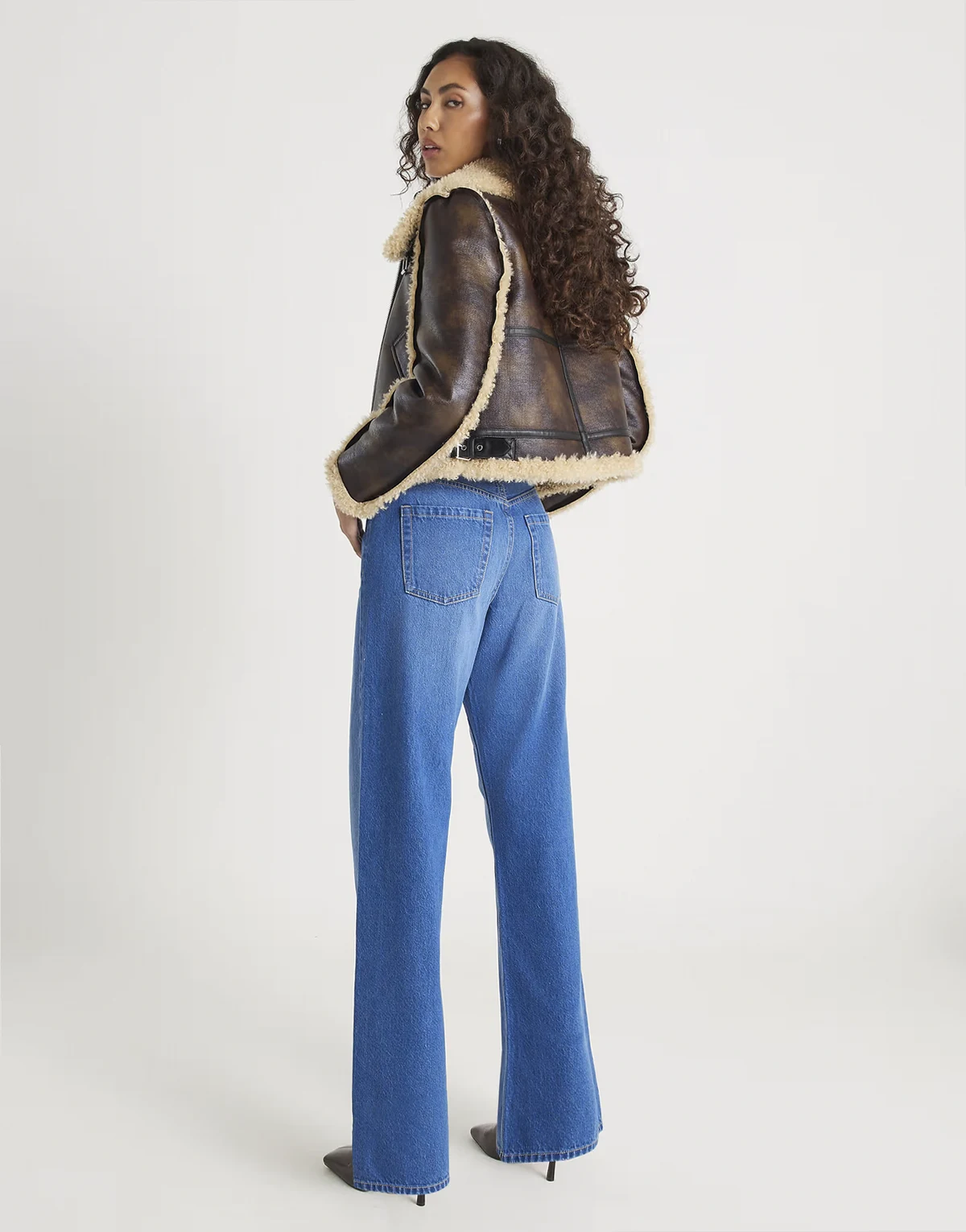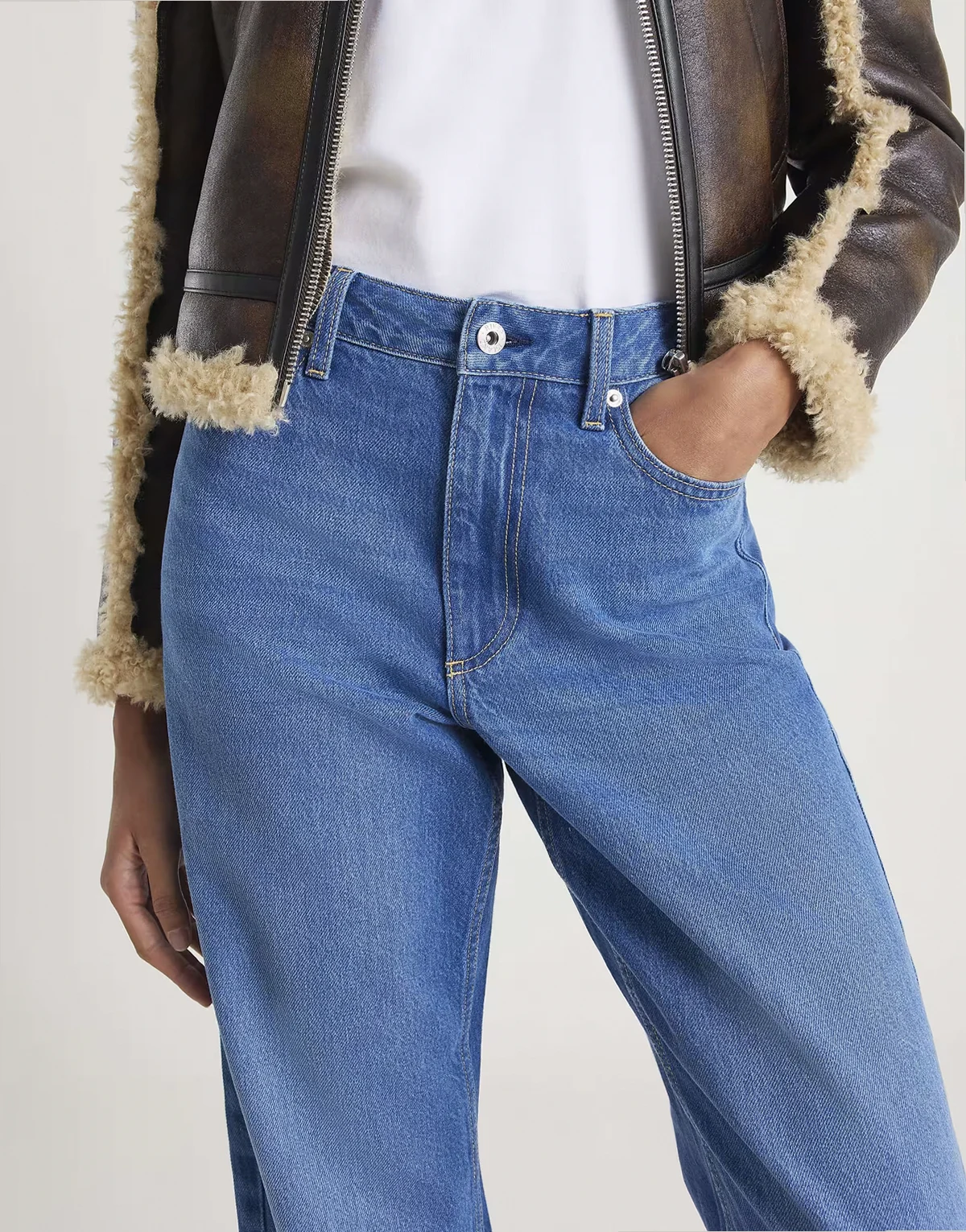 high rise relaxed straight leg jeans in medium denim