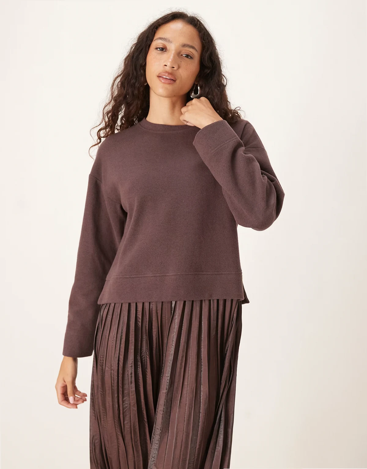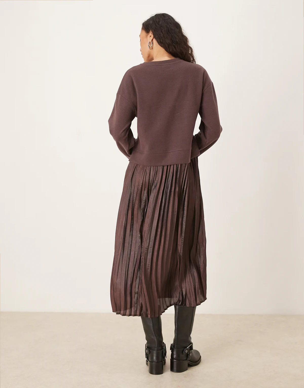 cotton jersey mix soft touch dress in chocolate brown