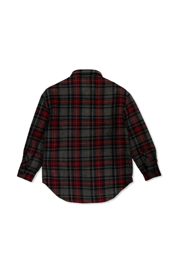 Indulge in timeless sophistication with this plaid-patterned shirt from Dolce & Gabbana Kids. Rendered in refined hues of gray, black, and red, this classic long-sleeve silhouette features a crisp collar and a rounded hem, evoking an understated yet distinguished charm perfect for discerning young trendsetters.
