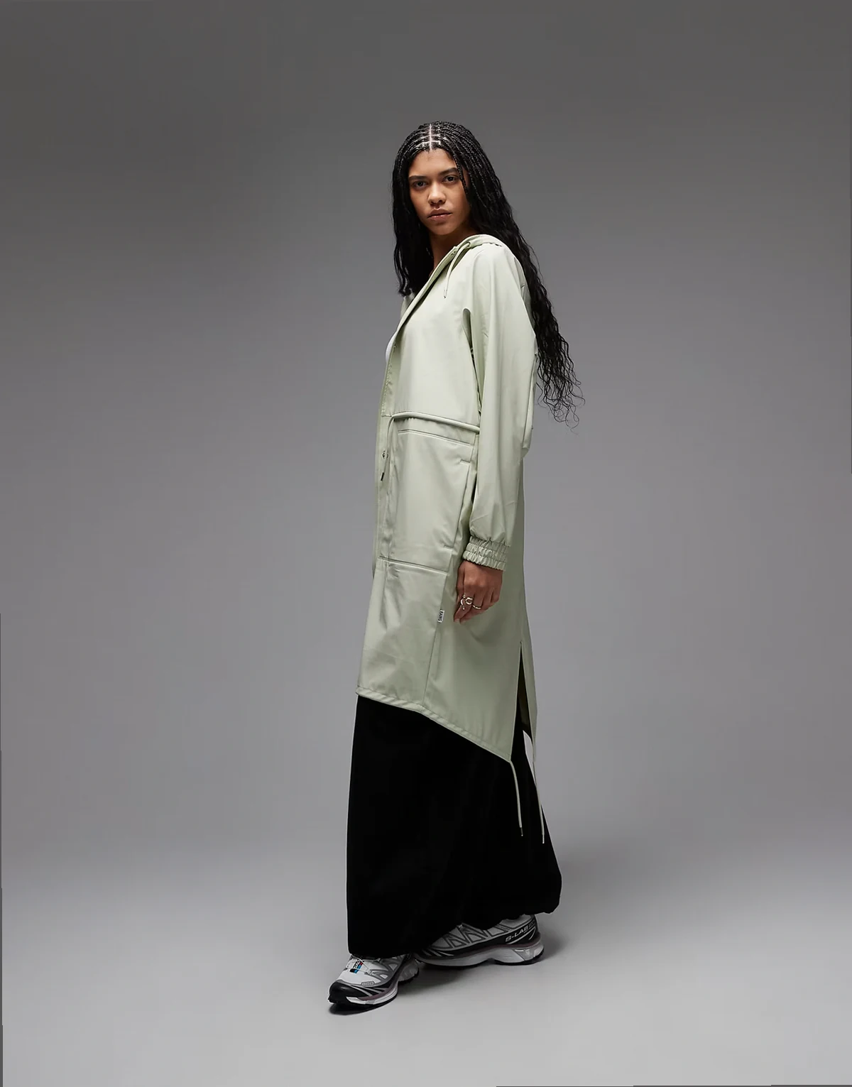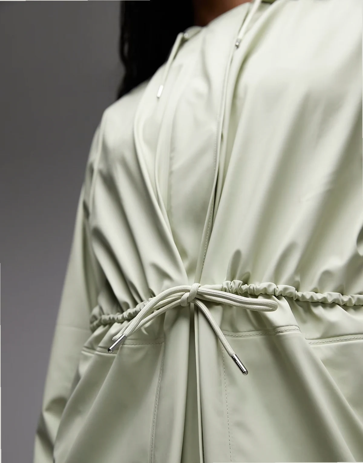 18550 String waterproof cinched longer parka jacket in light green
