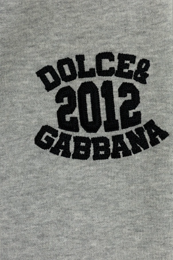 Artfully understated, their smooth gray surface is accented by bold overlock stitching running the length of the legs, creating a striking contrast alongside the deep black ribbed trims at the waist and cuffs. The distinct, embroidered “DOLCE & GABBANA 2012” logo placed at the left hip imparts a touch of signature luxury, while the minimalistic design ensures these pants remain a timeless wardrobe essential.