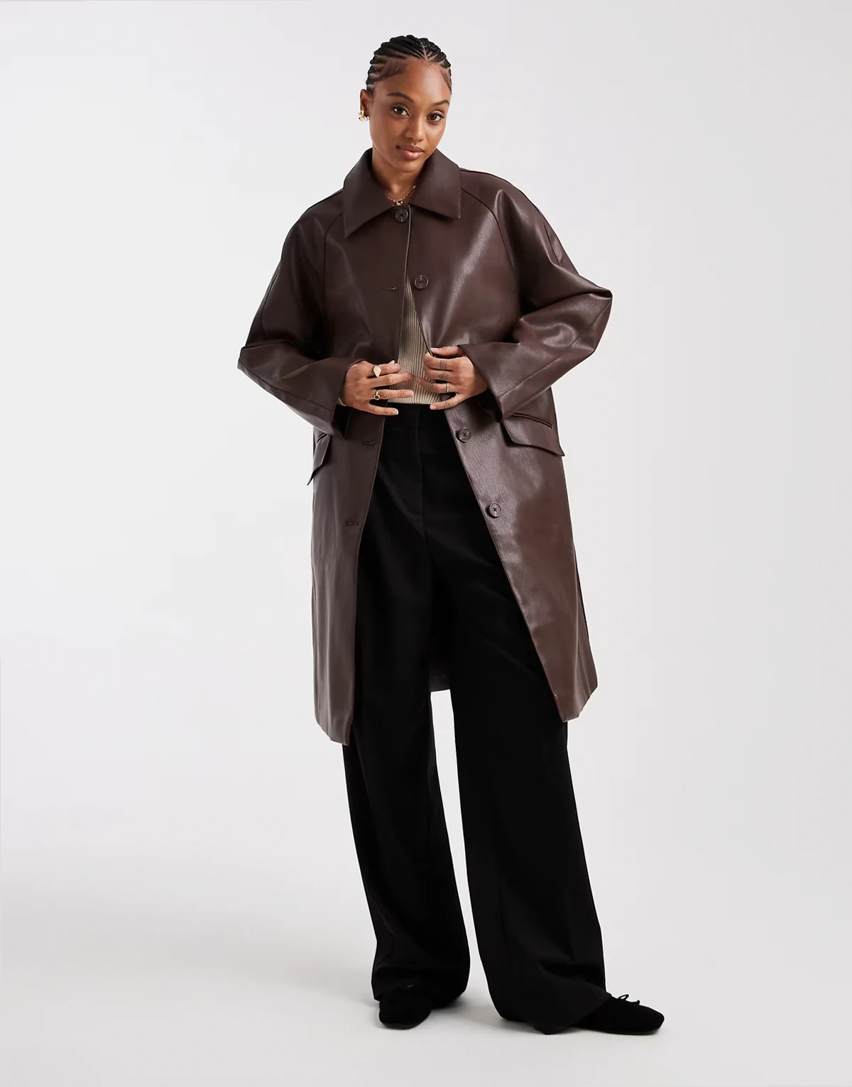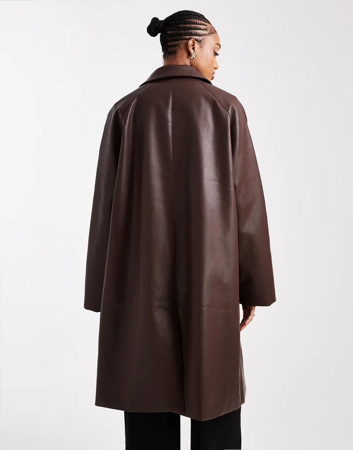ASOS DESIGN Tall leather look car coat in chocolate