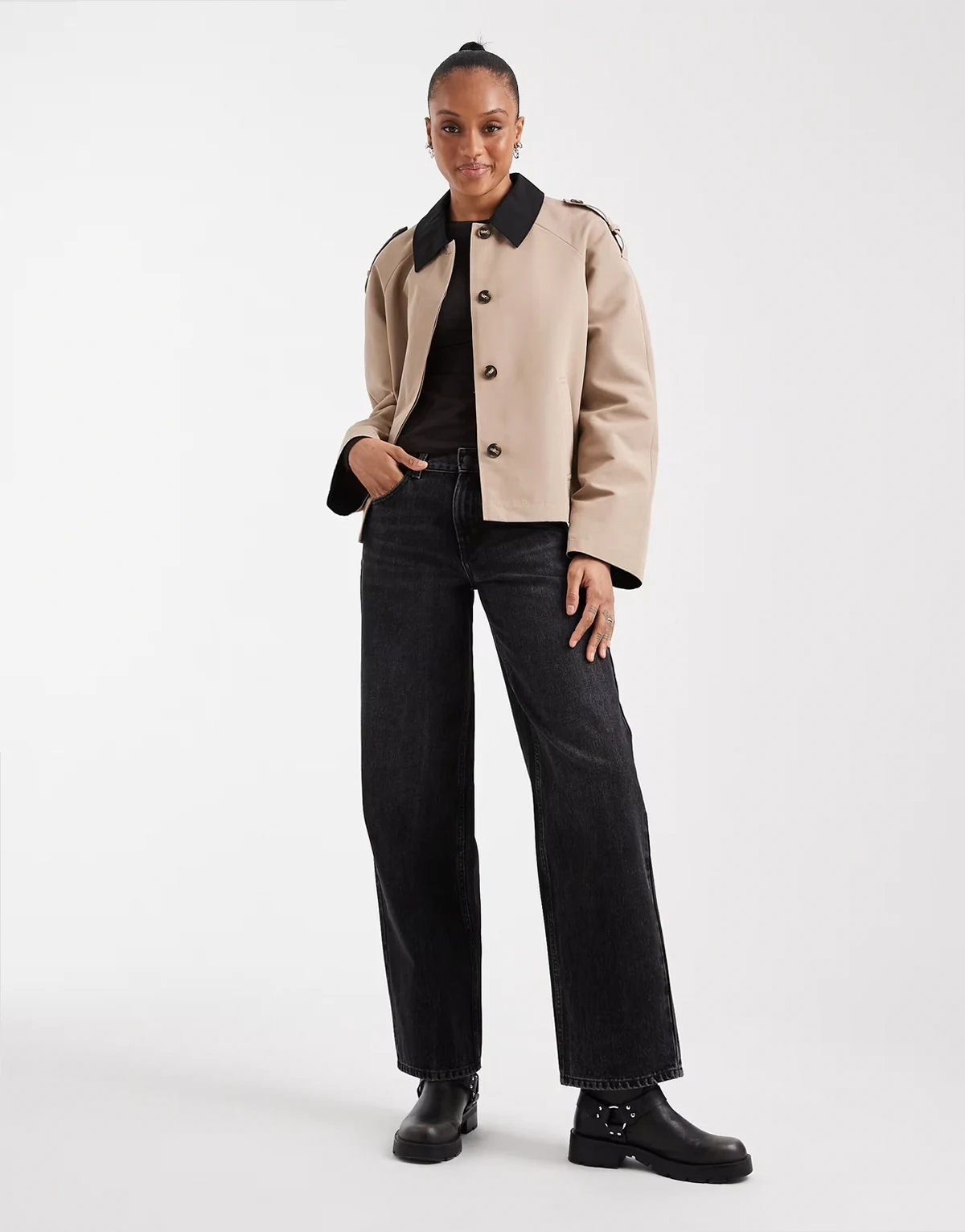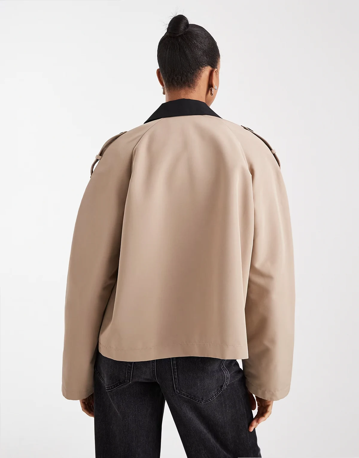 clean cropped trench coat with contrast collar in camel