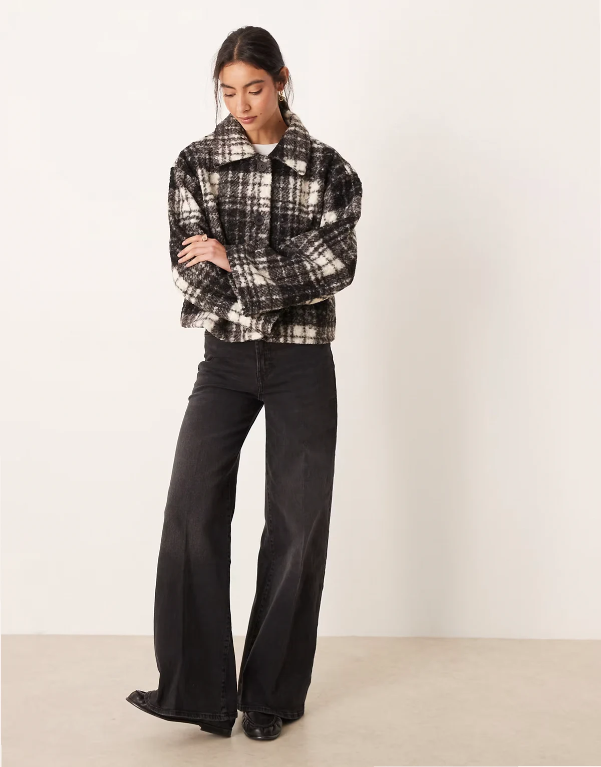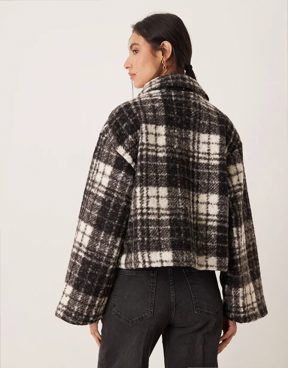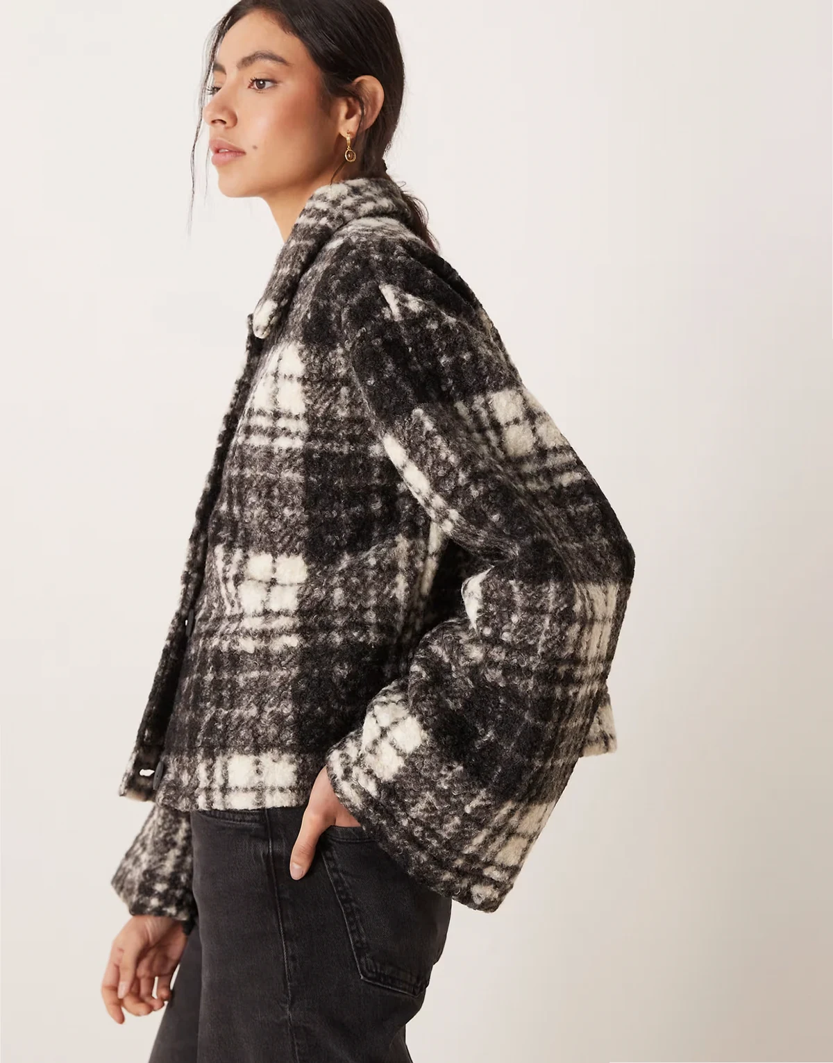 boucle check short jacket in black and white