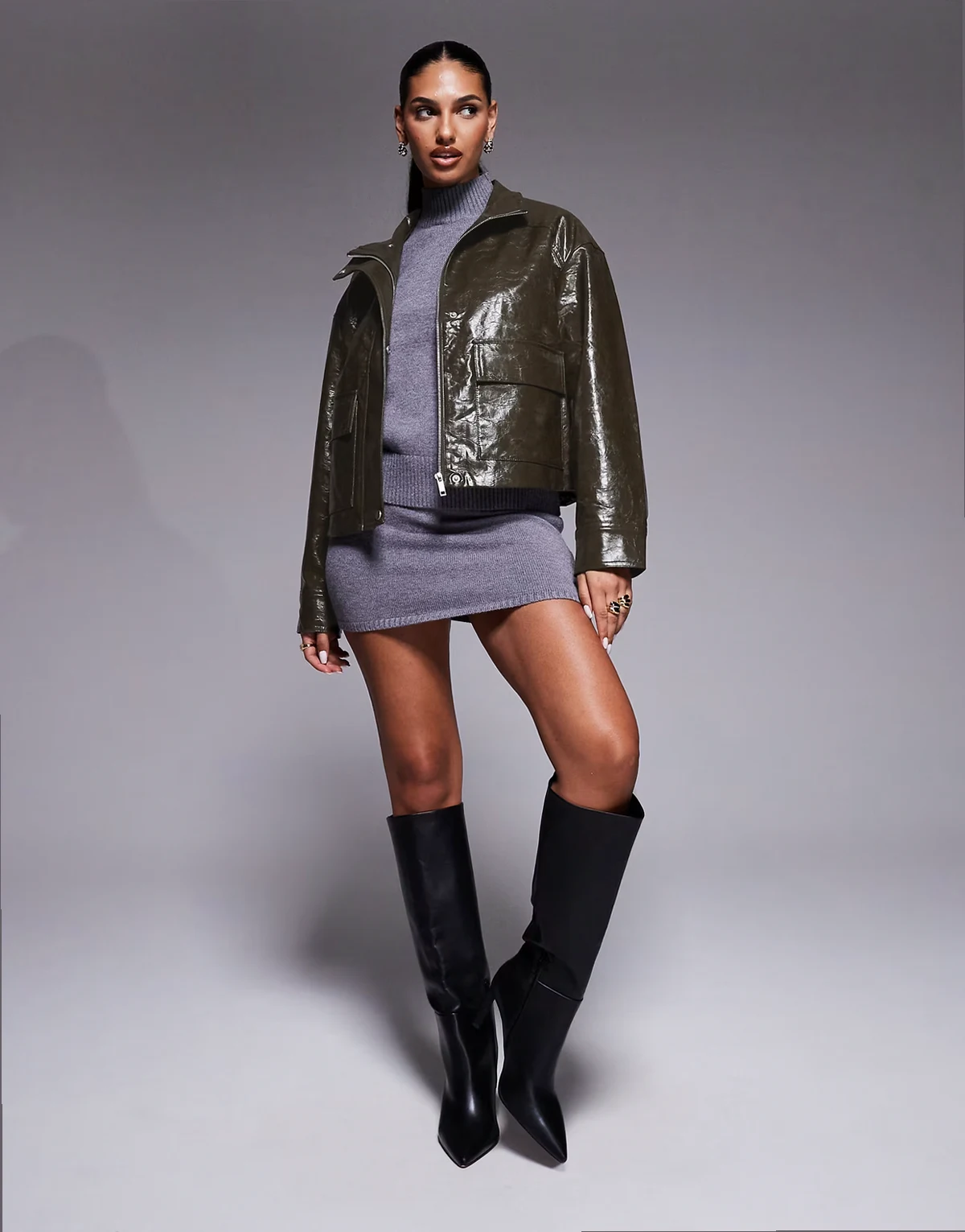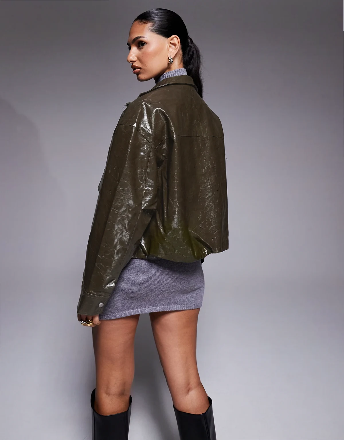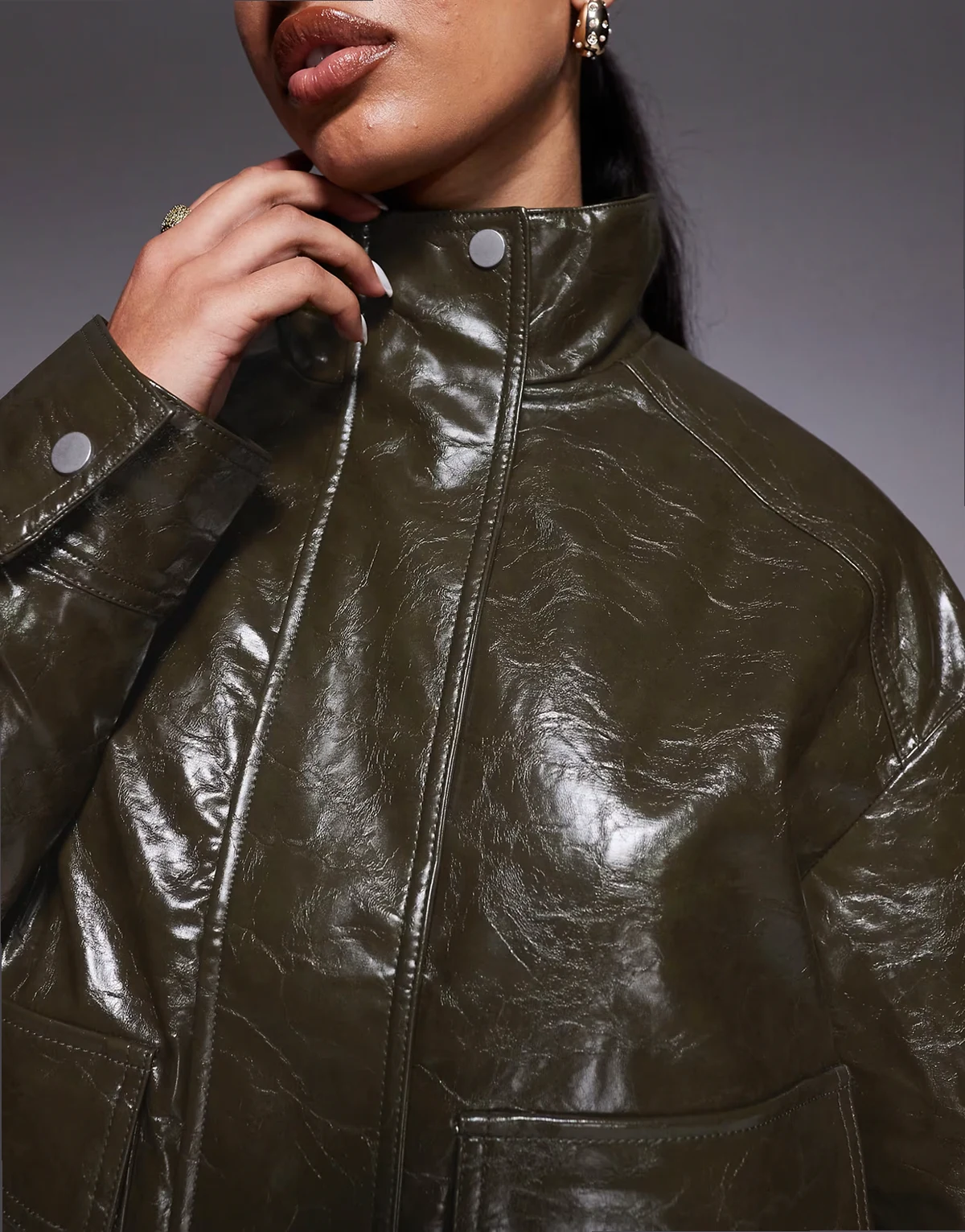 faux leather jacket in dark khaki