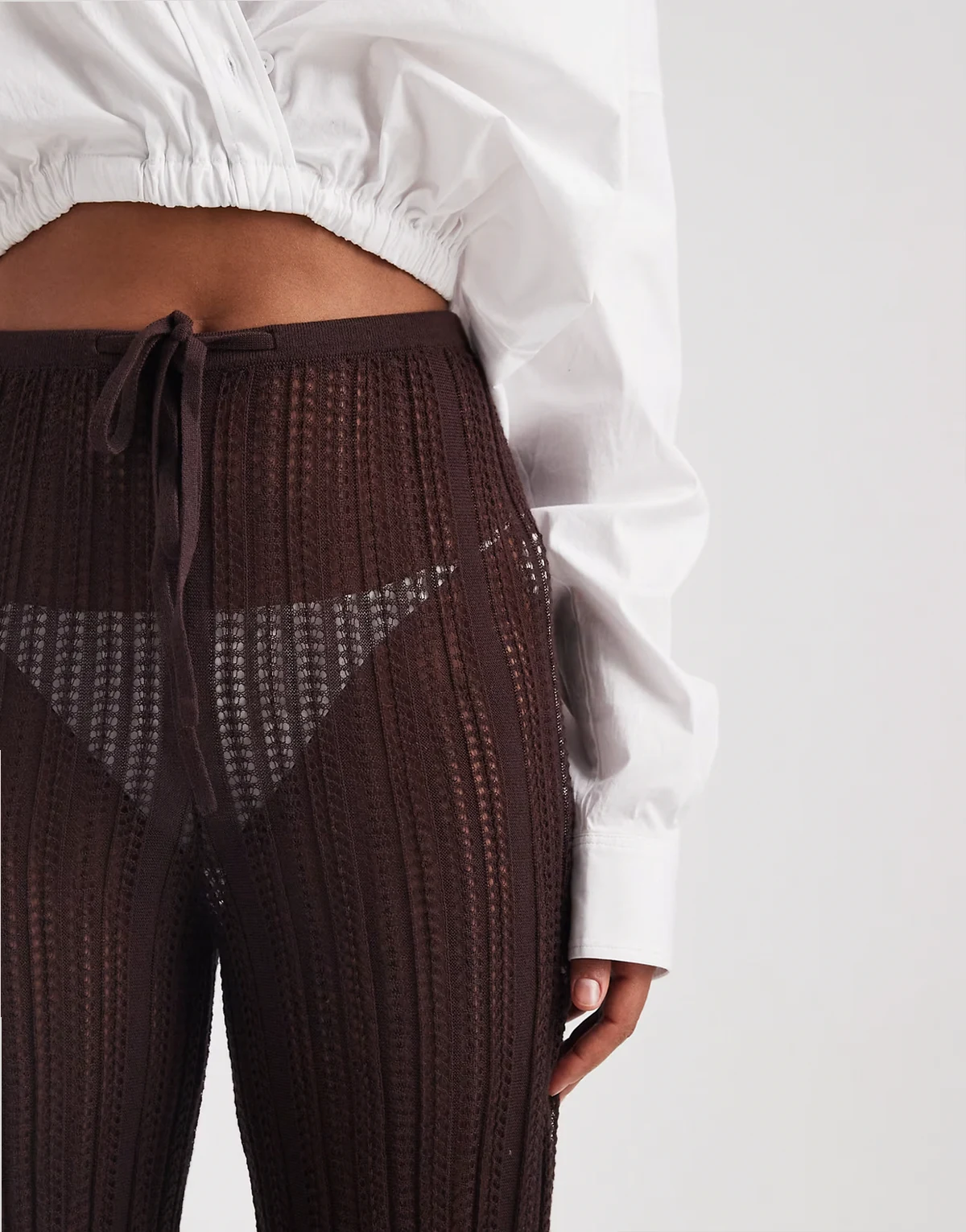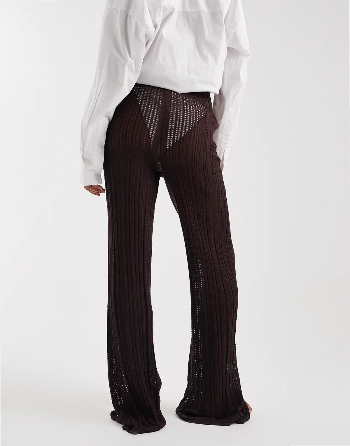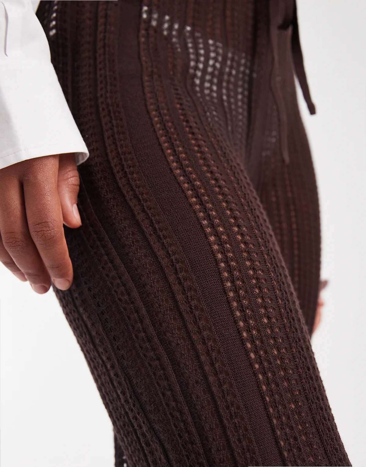 ASOS DESIGN Tall Polly pointelle knit beach pants in chocolate