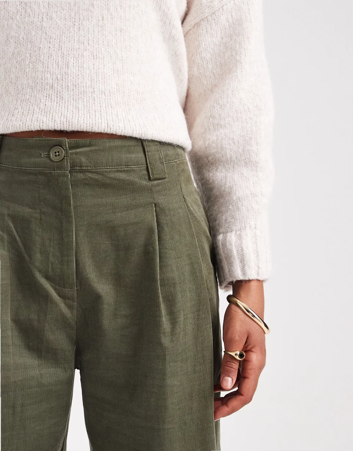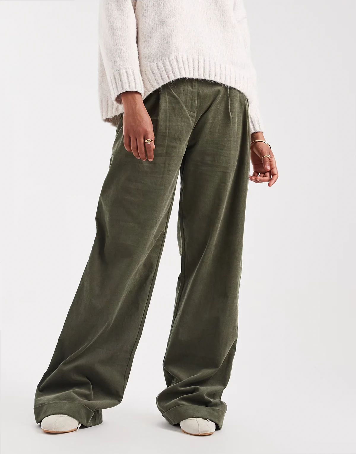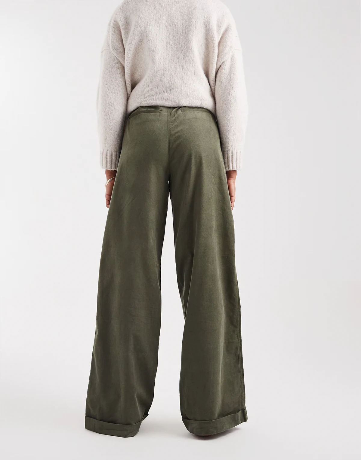 ASOS DESIGN Tall corduroy cuffed hem wide leg pants in khaki green