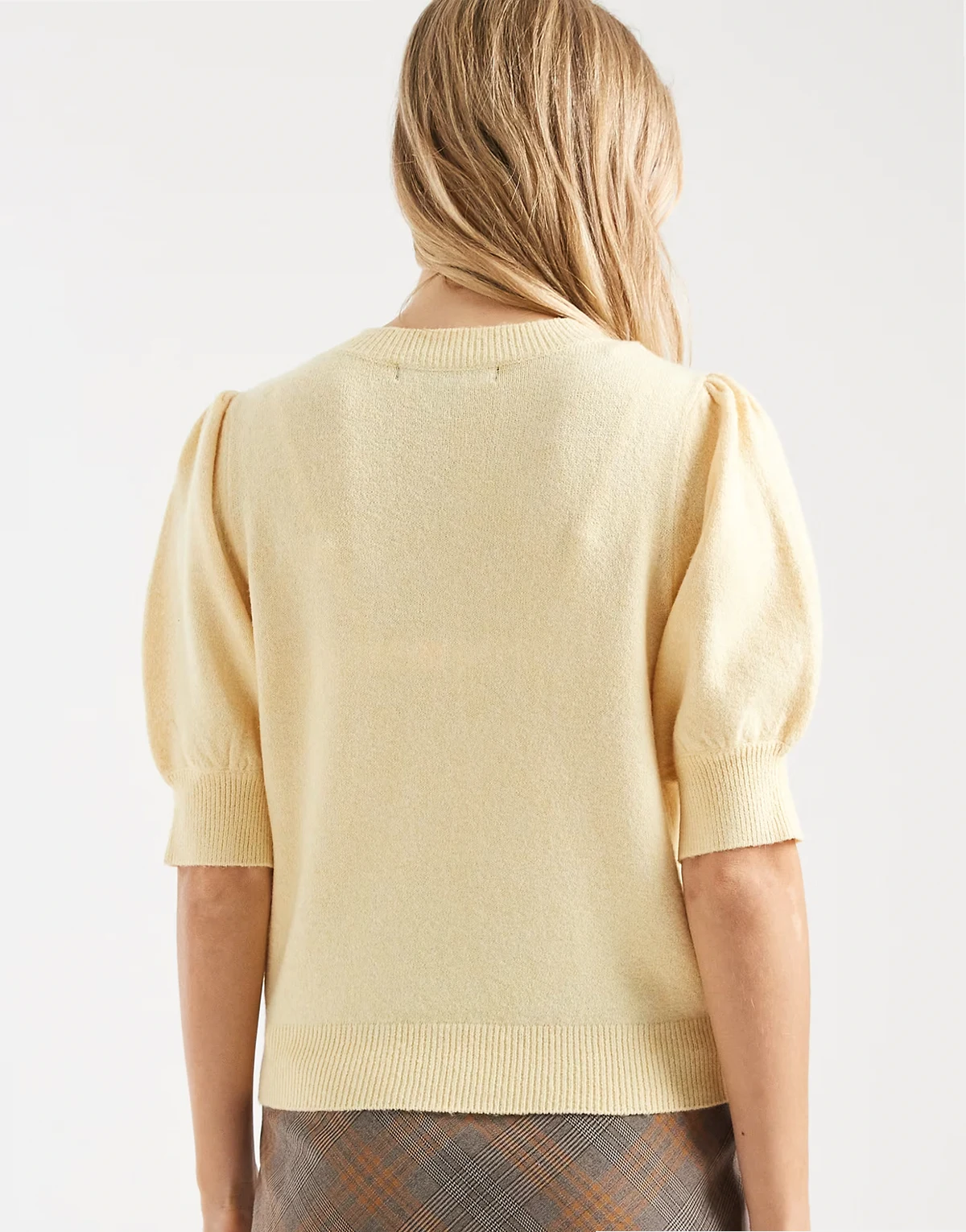 short sleeve knit top in golden yellow