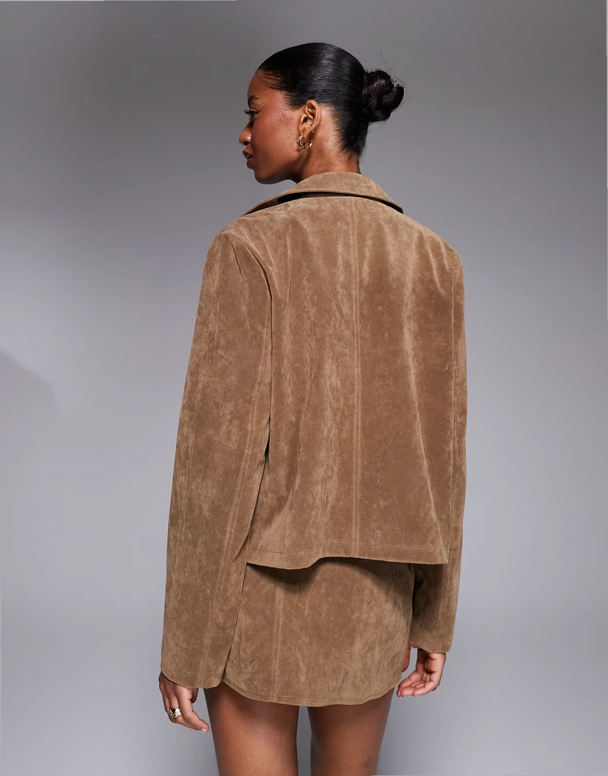 exclusive button front pocket detail faux suede jacket in tan -set