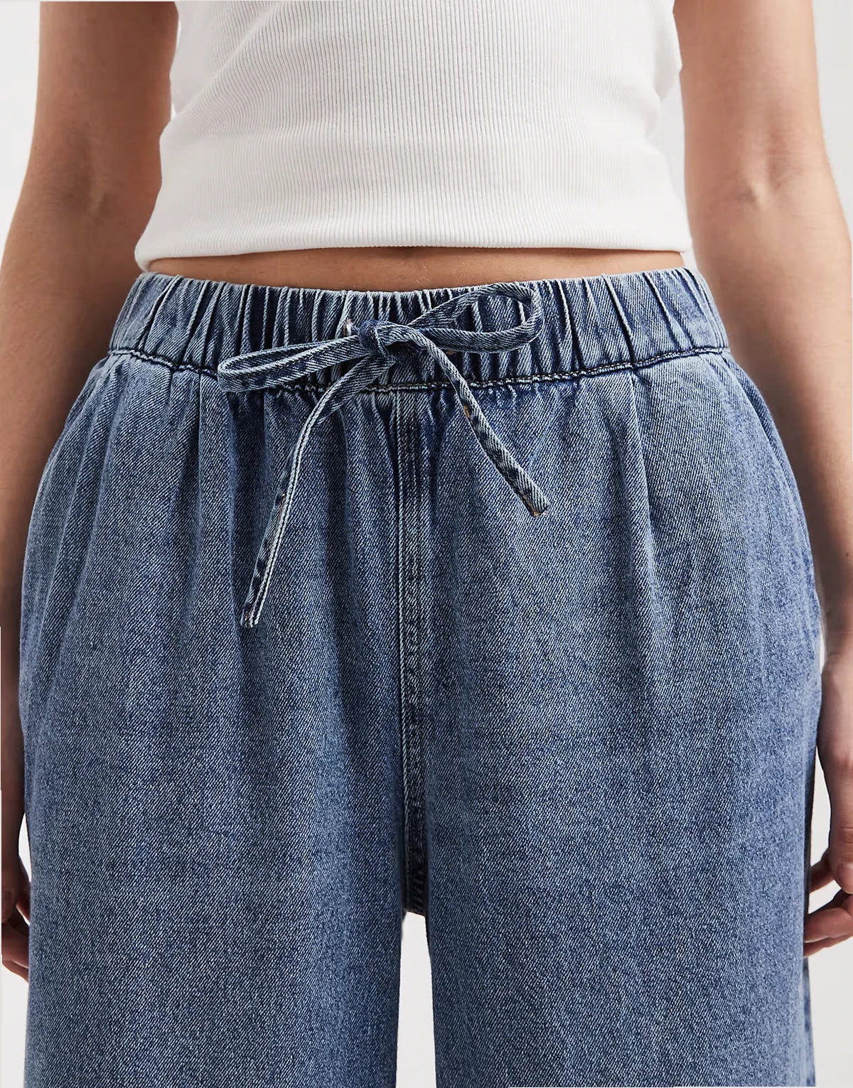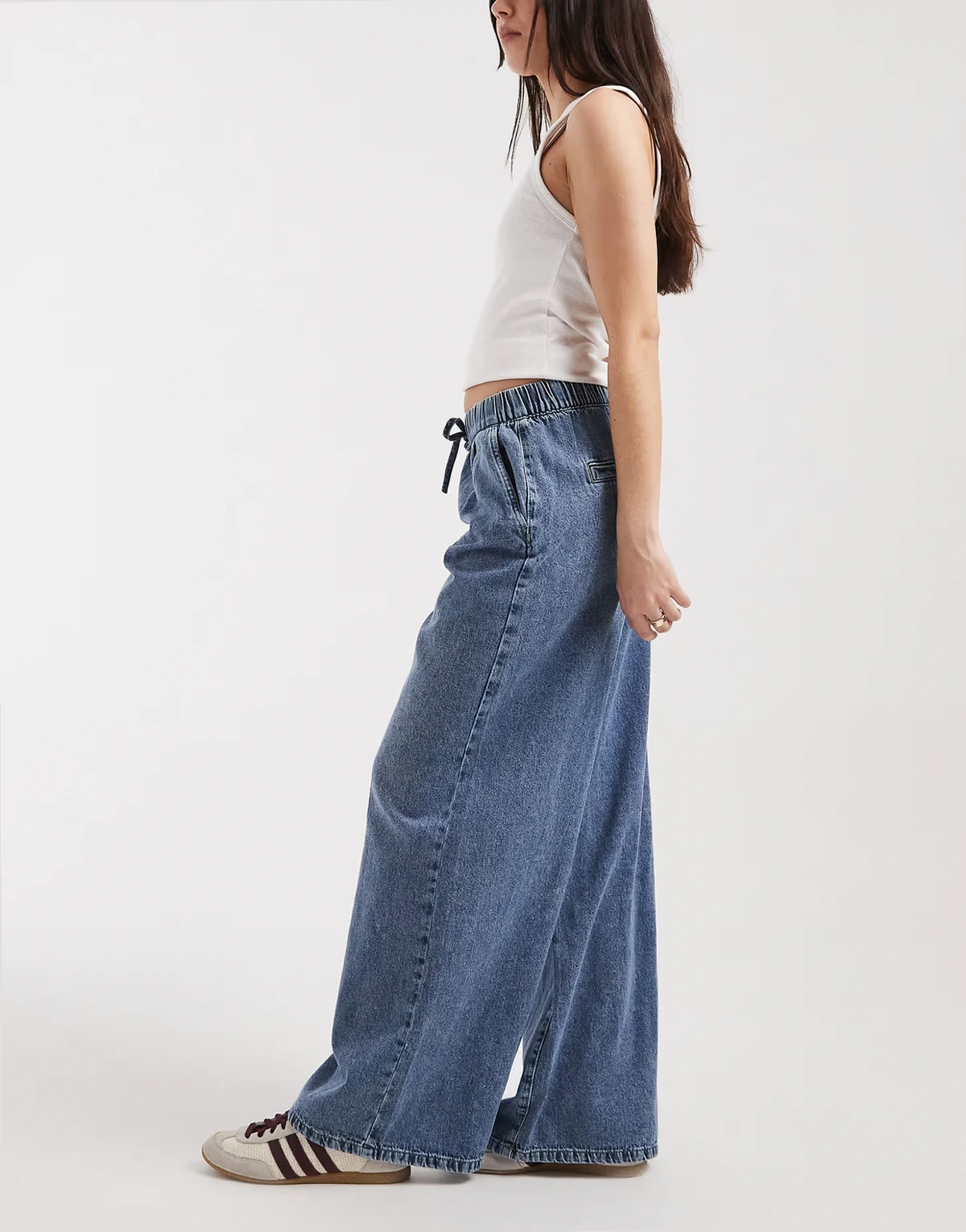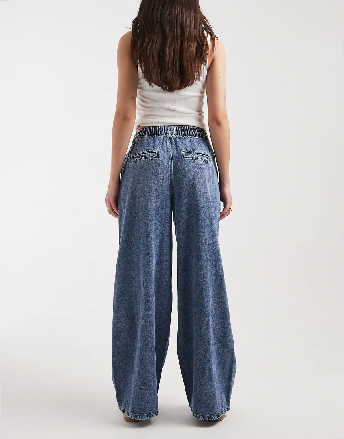 Valeria mid rise wide leg pull on jeans in medium blue wash
