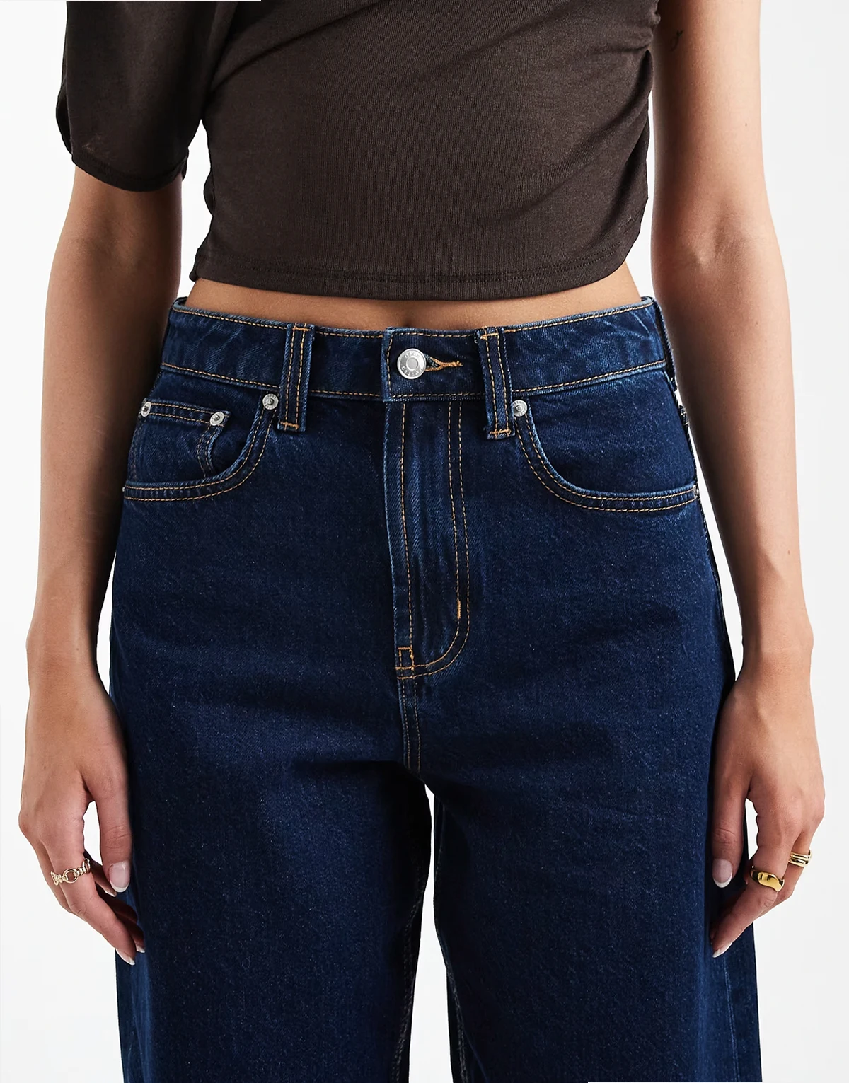 Non-stretch denim: mid-blue wash