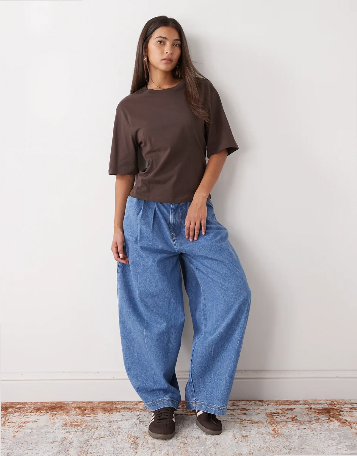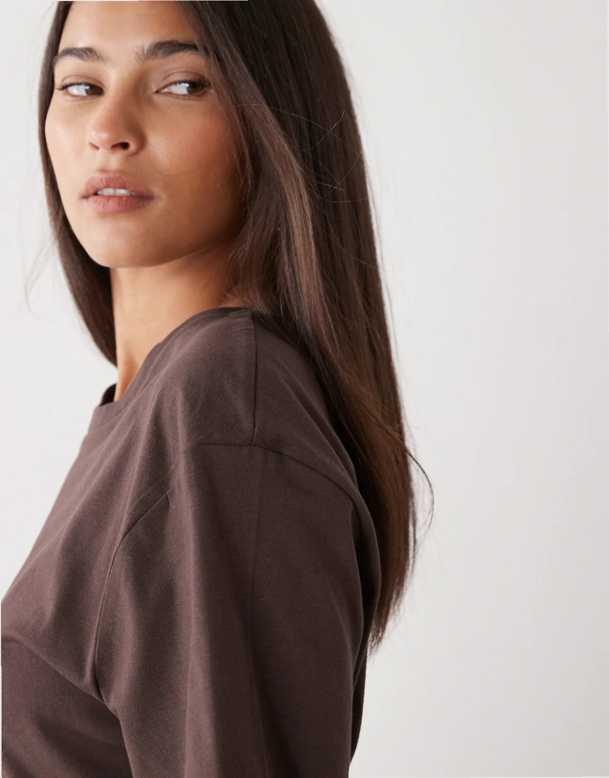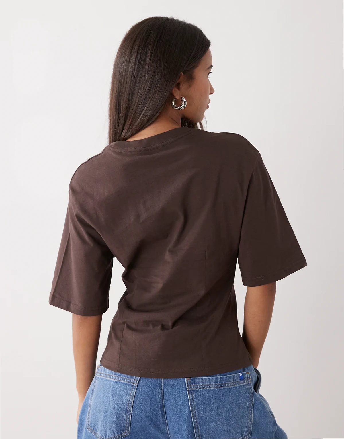 cinched waist structured jersey T-shirt in chocolate brown