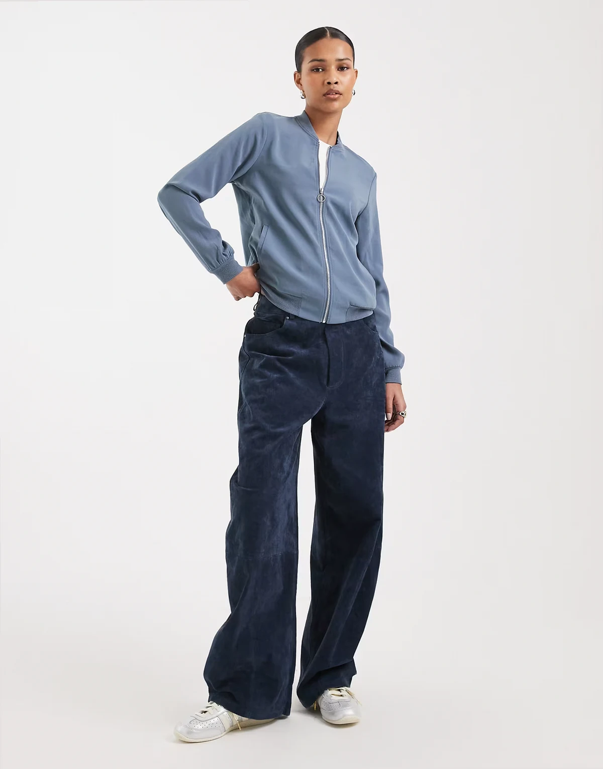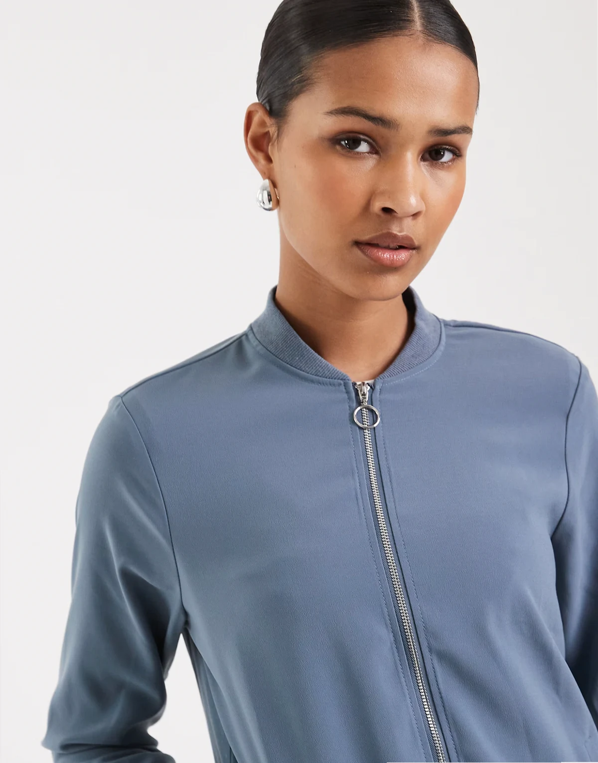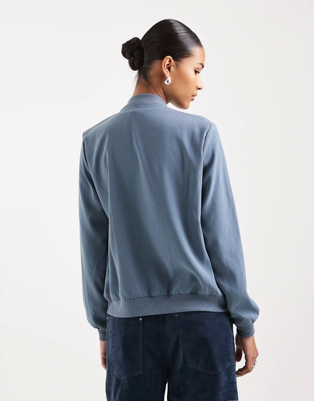 lightweight zip front bomber jacket in china blue