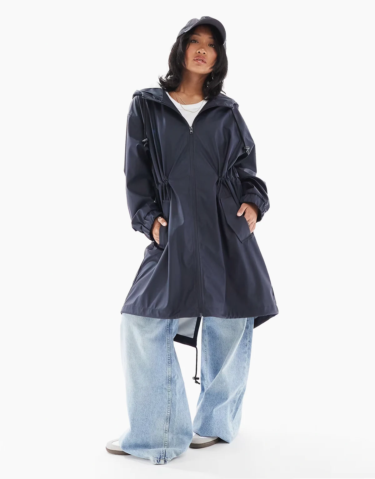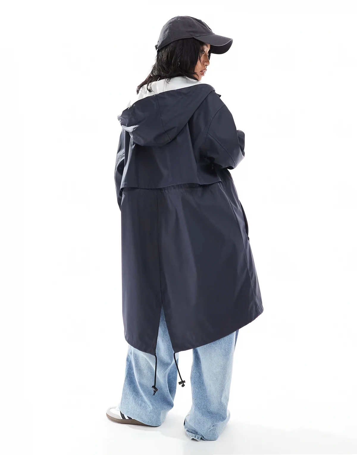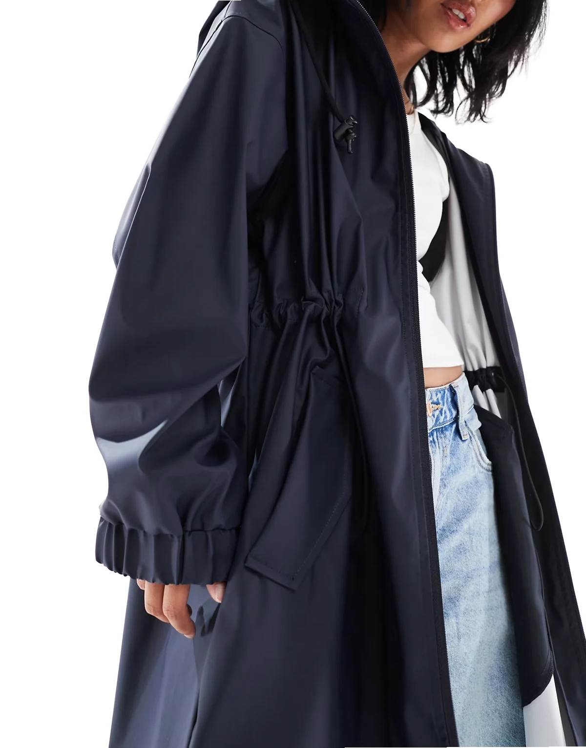 ASOS DESIGN Petite contrast detail rubberized rain parka in navy
