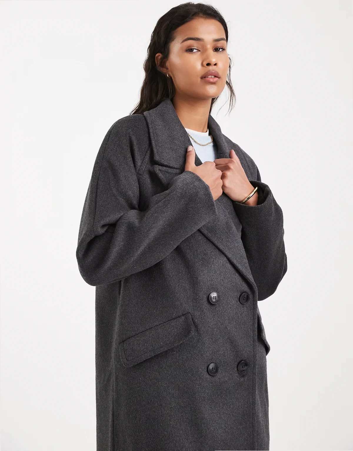 oversized maxi wool mix coat in dark gray melange