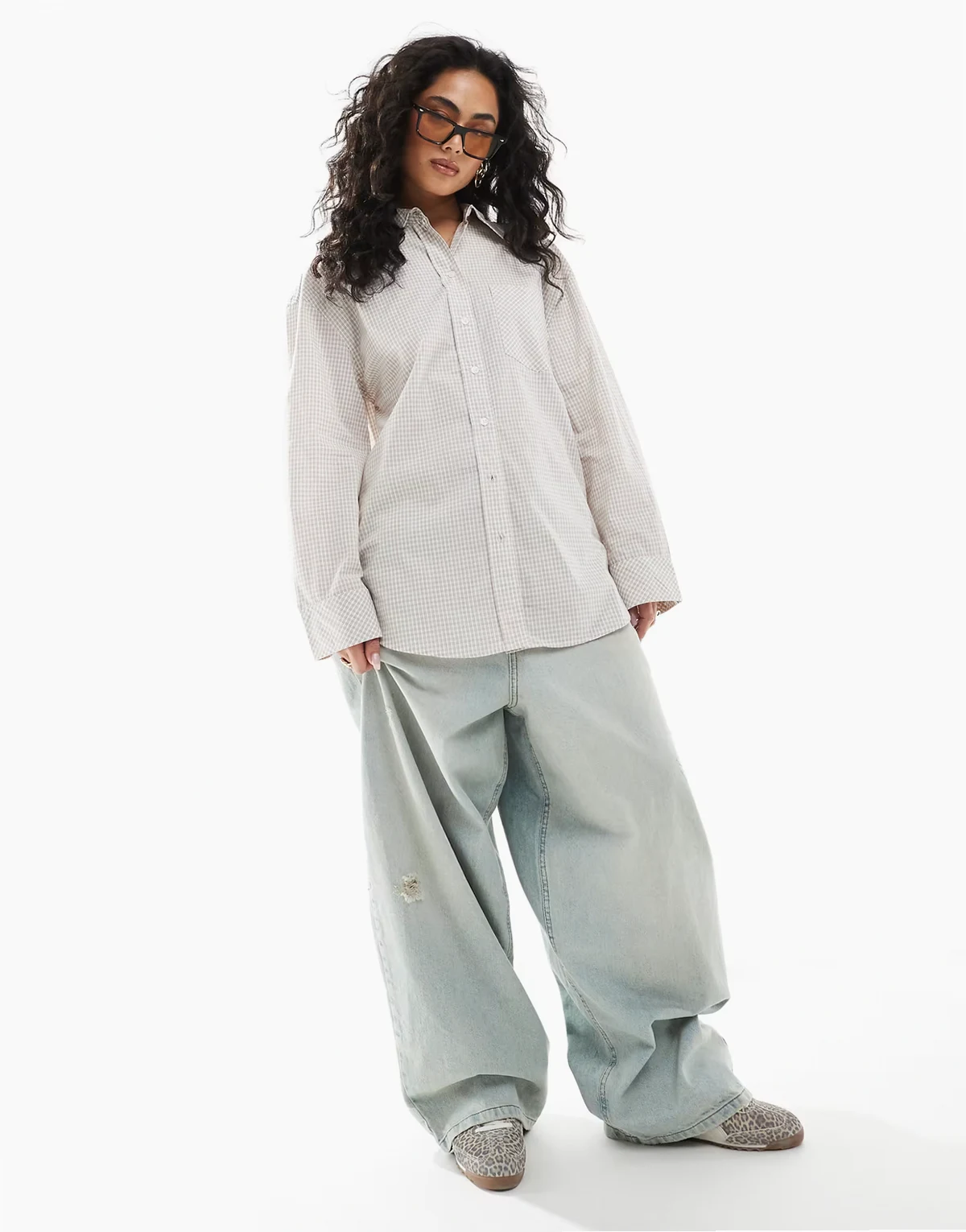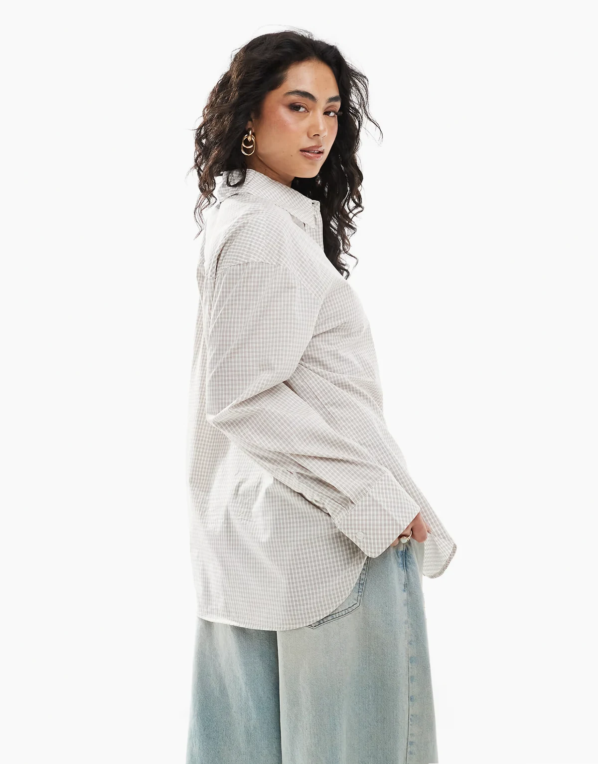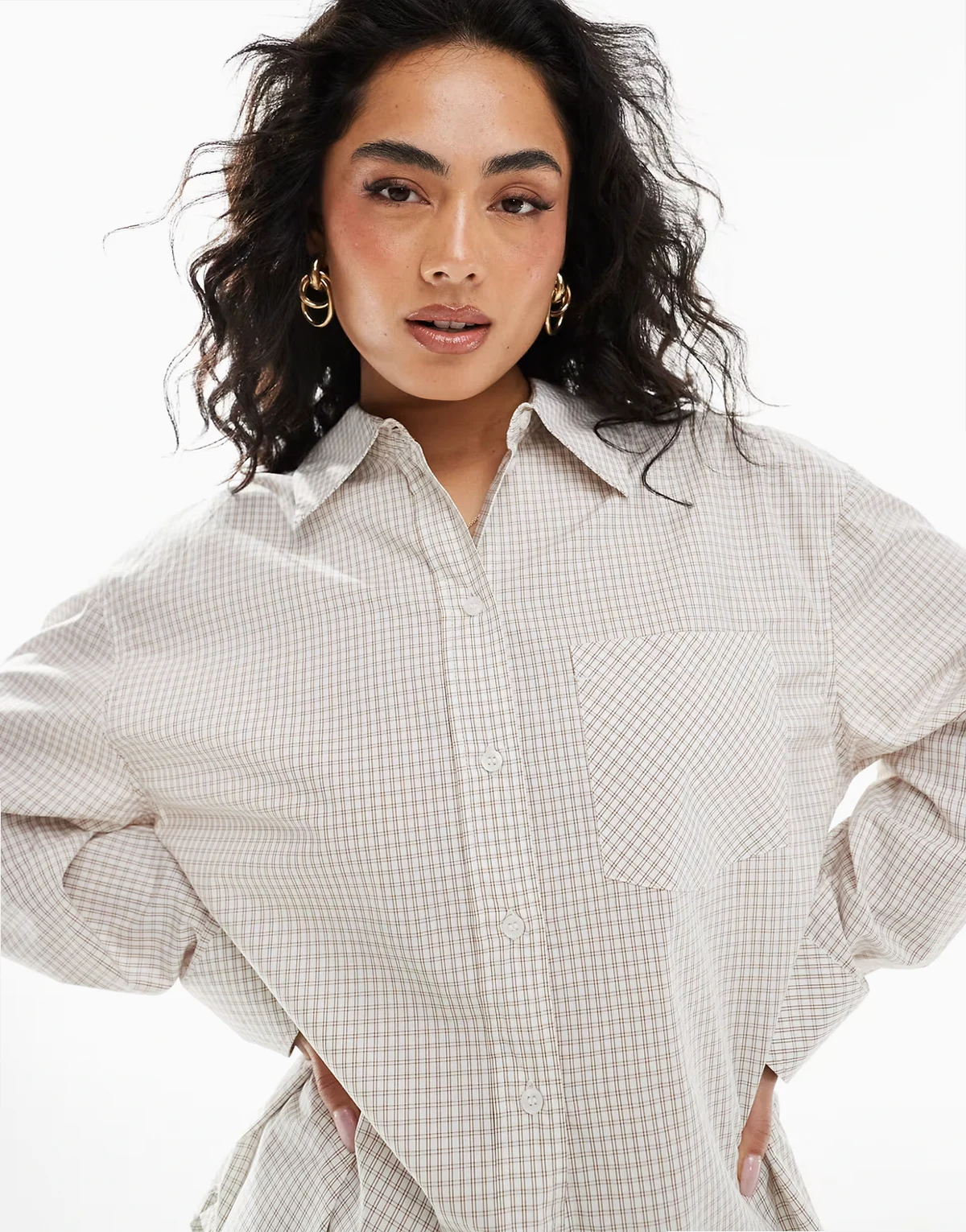 oversized cotton shirt in beige plaid