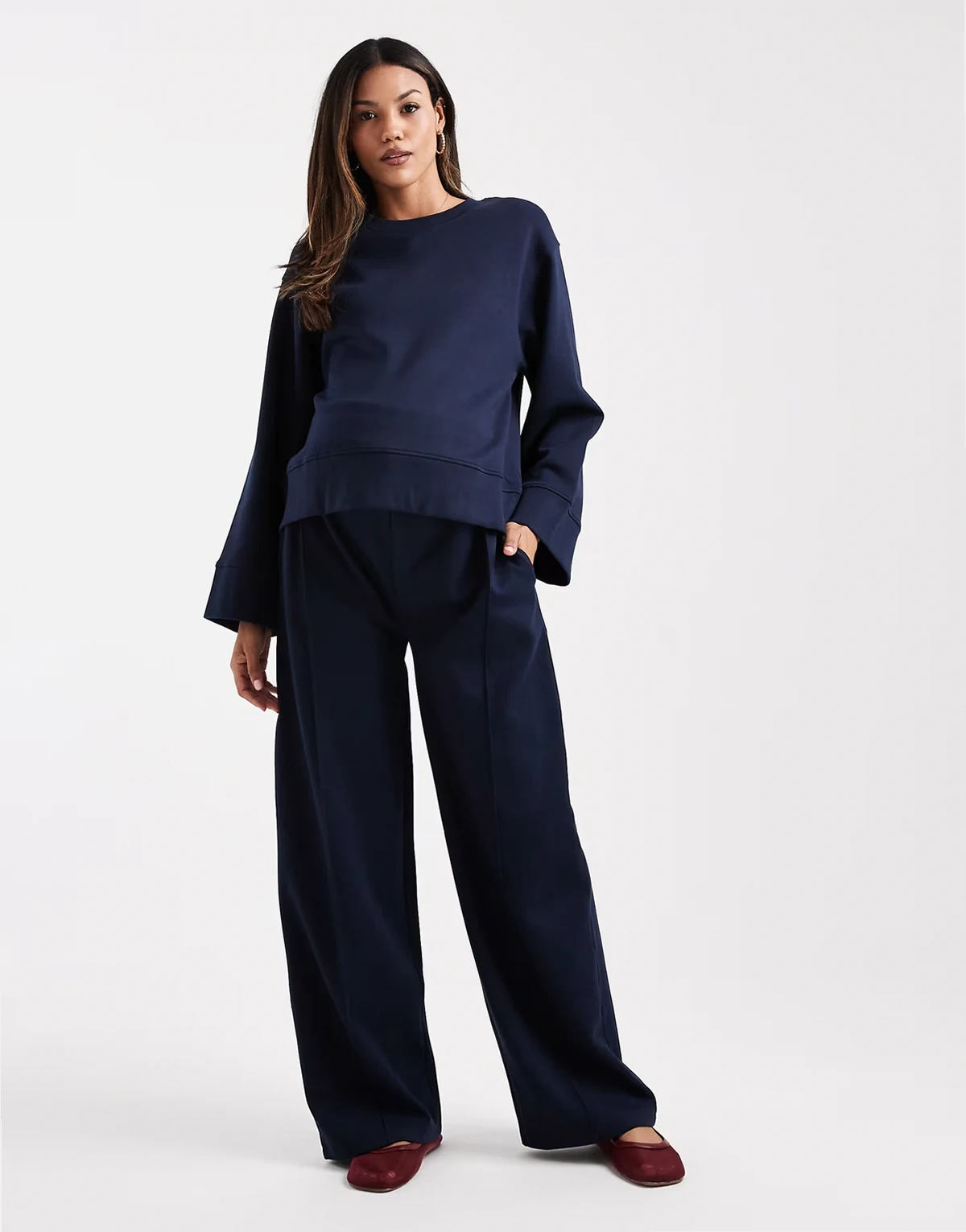 ASOS DESIGN Maternity interlock oversized crew neck top in navy
