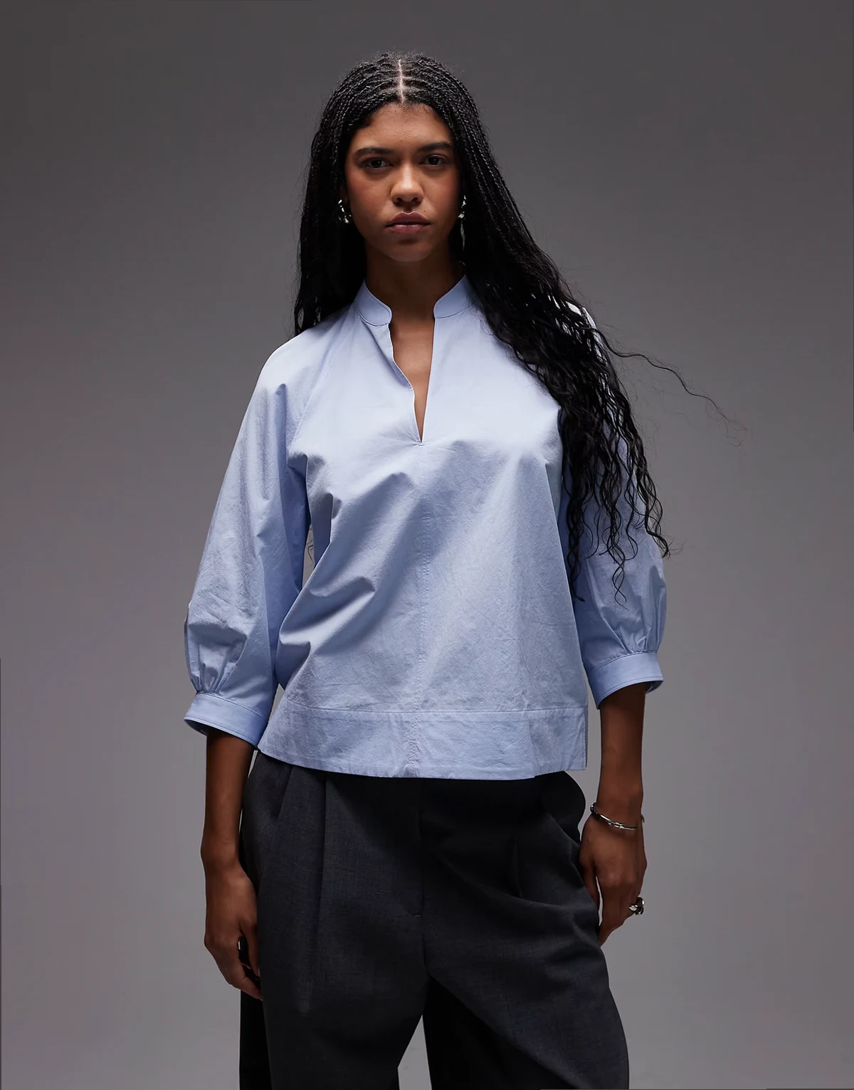 oversized blouse with volume sleeves in blue