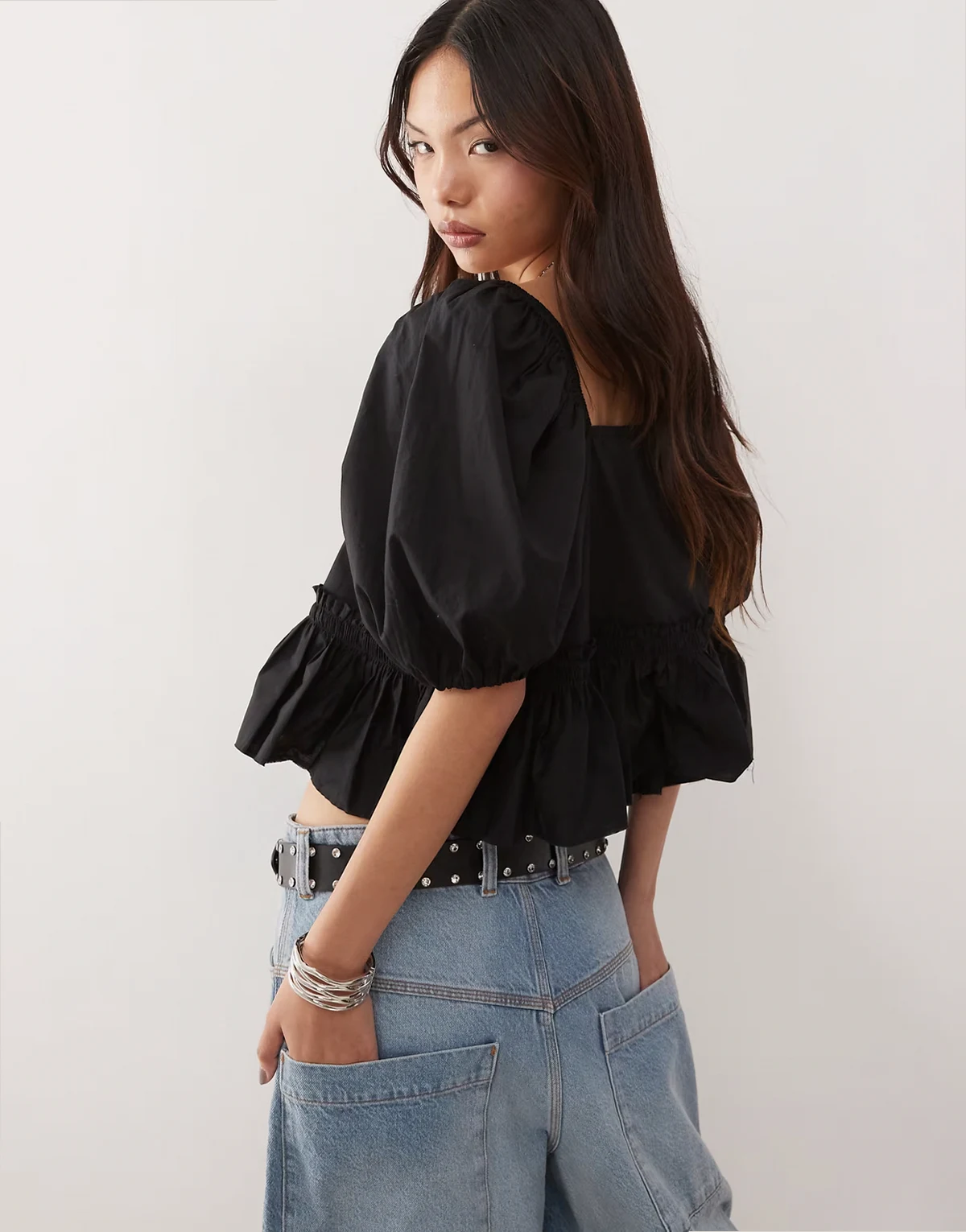 Off-White Puff-Sleeve Ruffle Crêpe De Chine Blouse