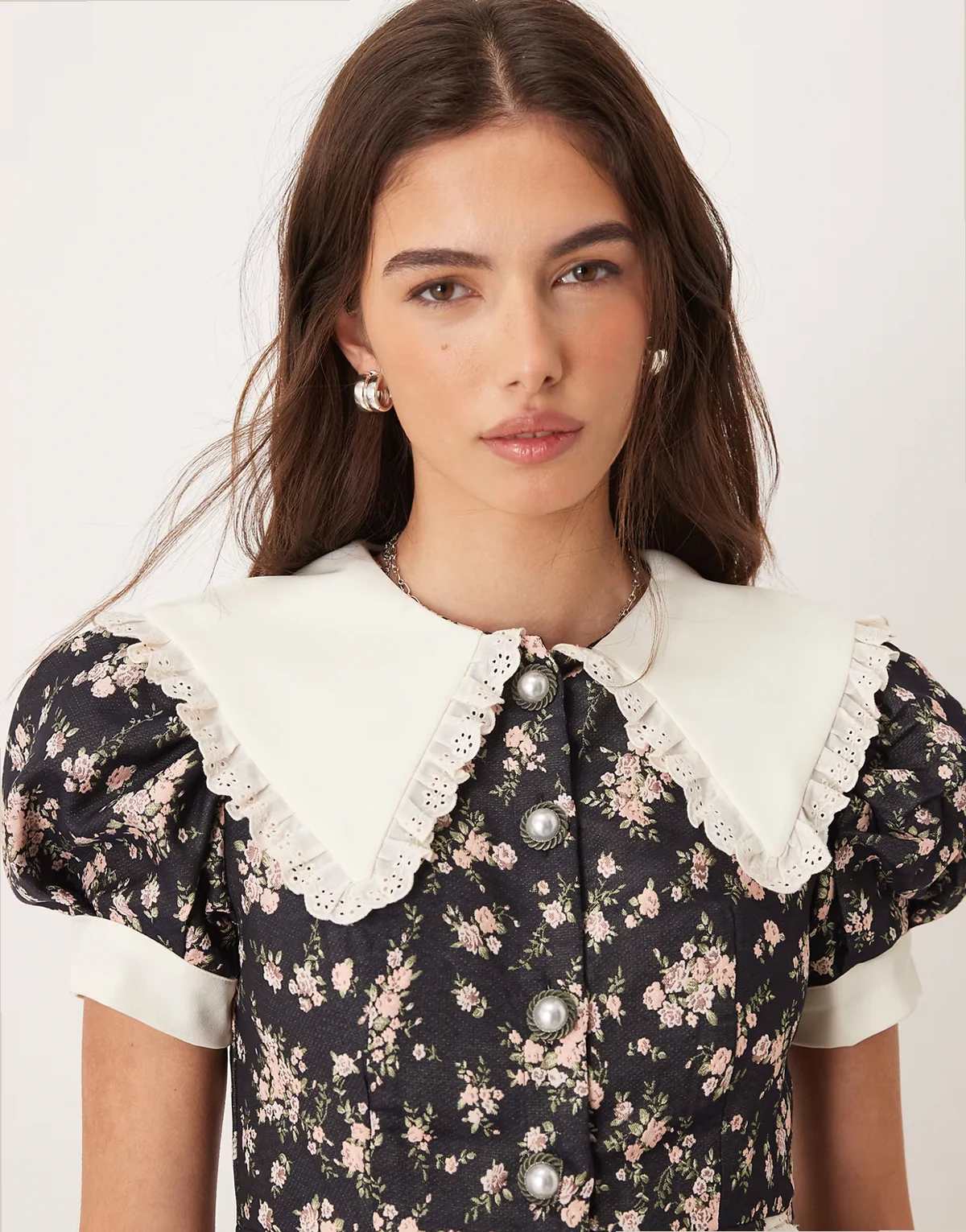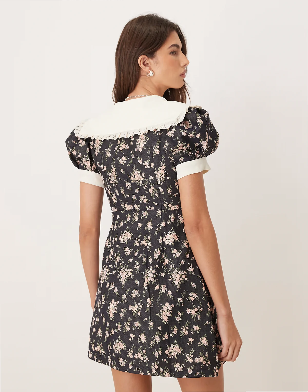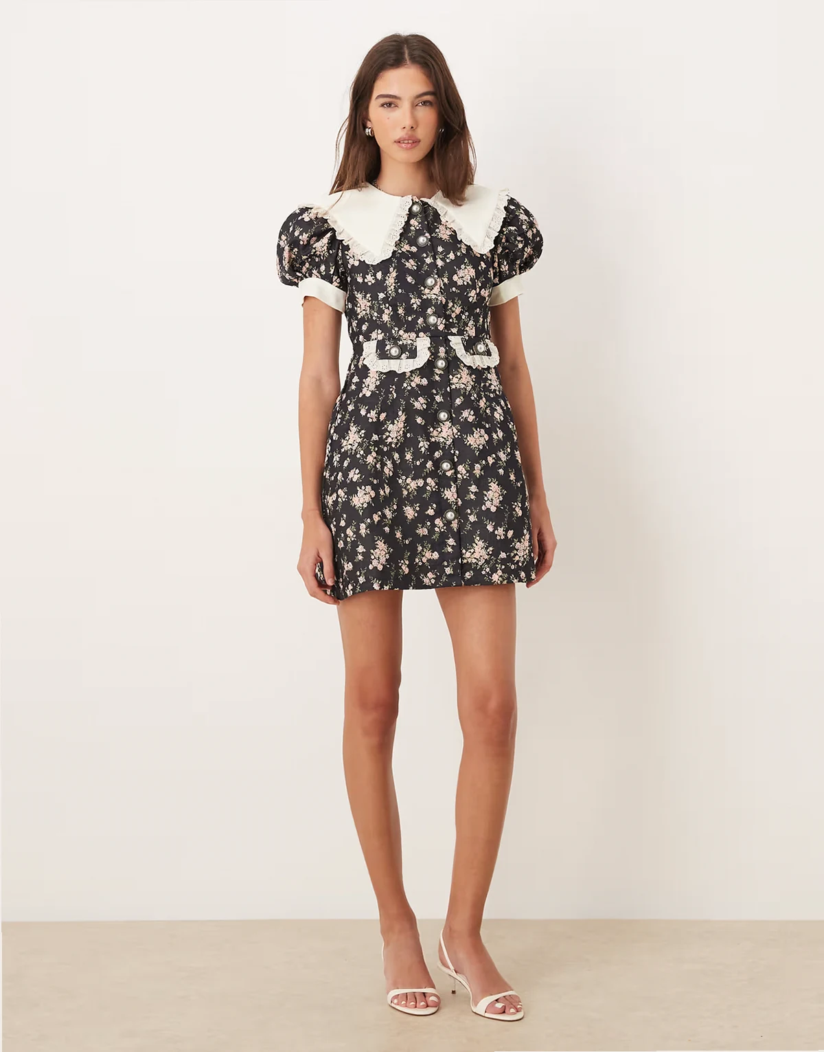 4. Eclipse Exclusive contrast collar ditsy floral button front mini dress in black floral print