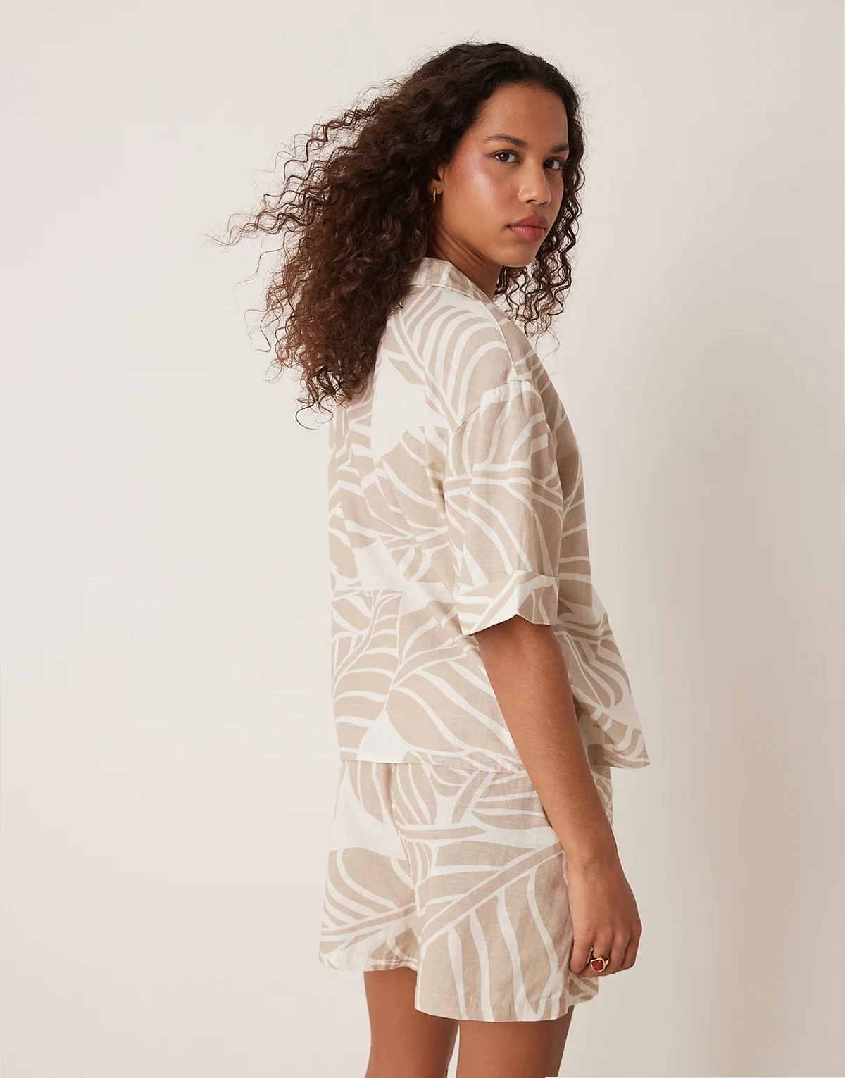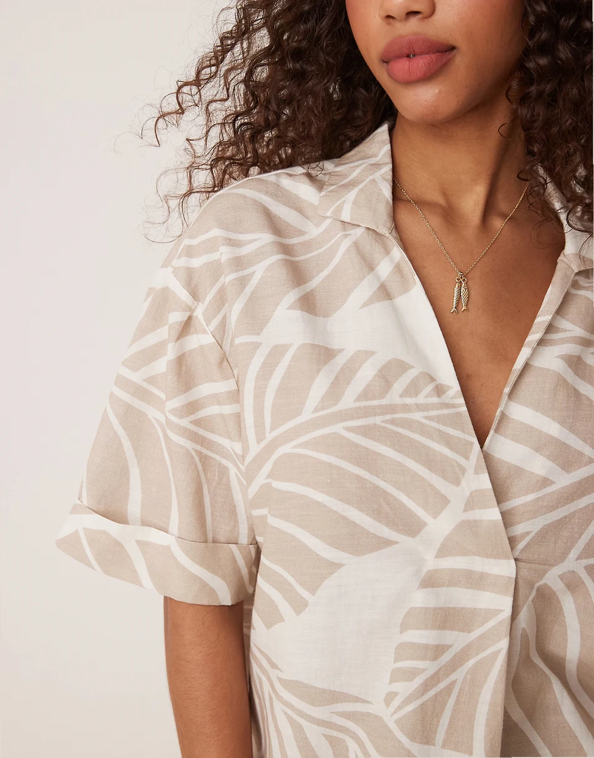 boxy polo-detail top in oversized tonal leaf print - part of a set